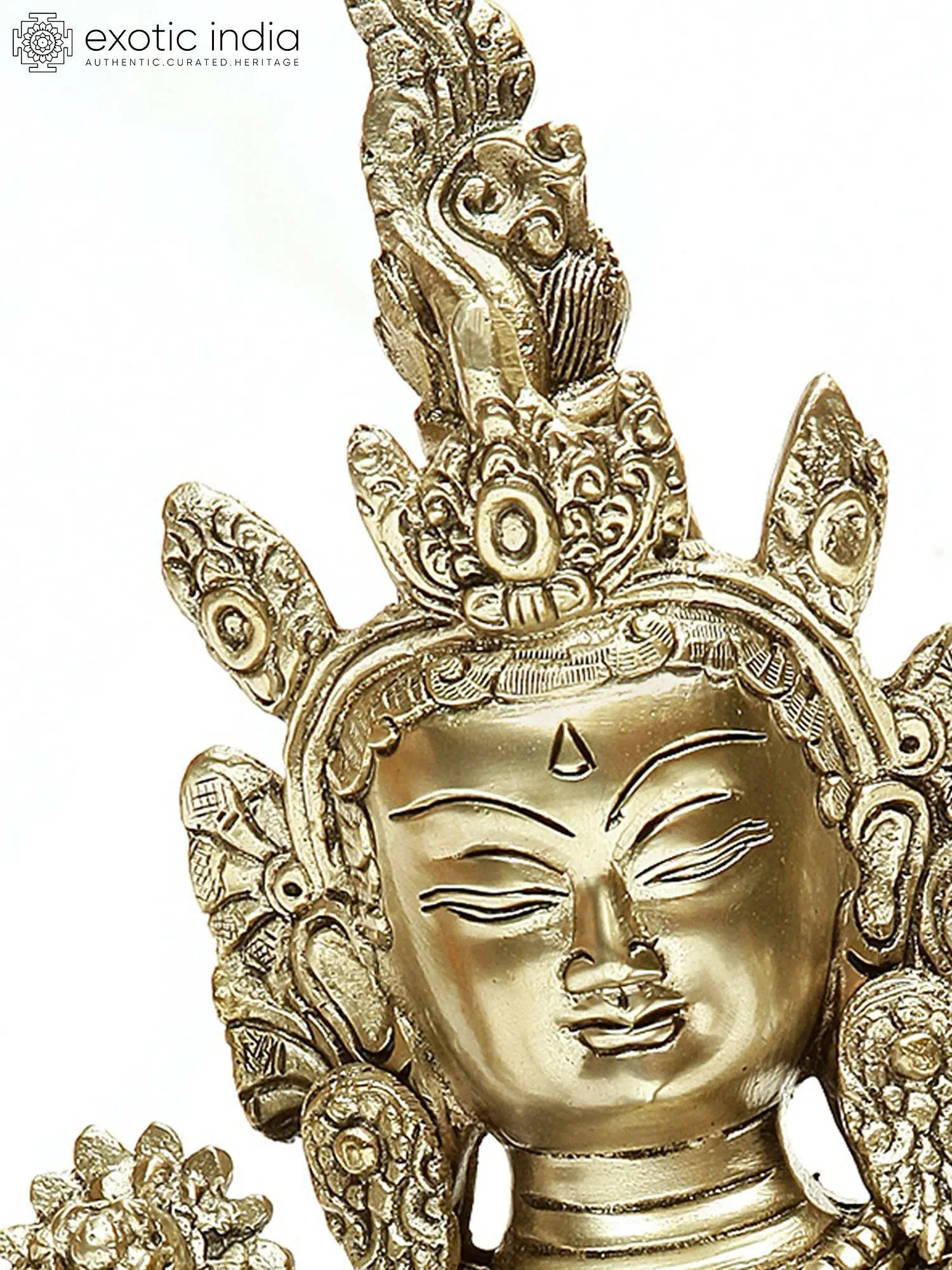 11" Tibetan Buddhist Deity- Goddess Green Tara In Brass | Handmade | Made In India