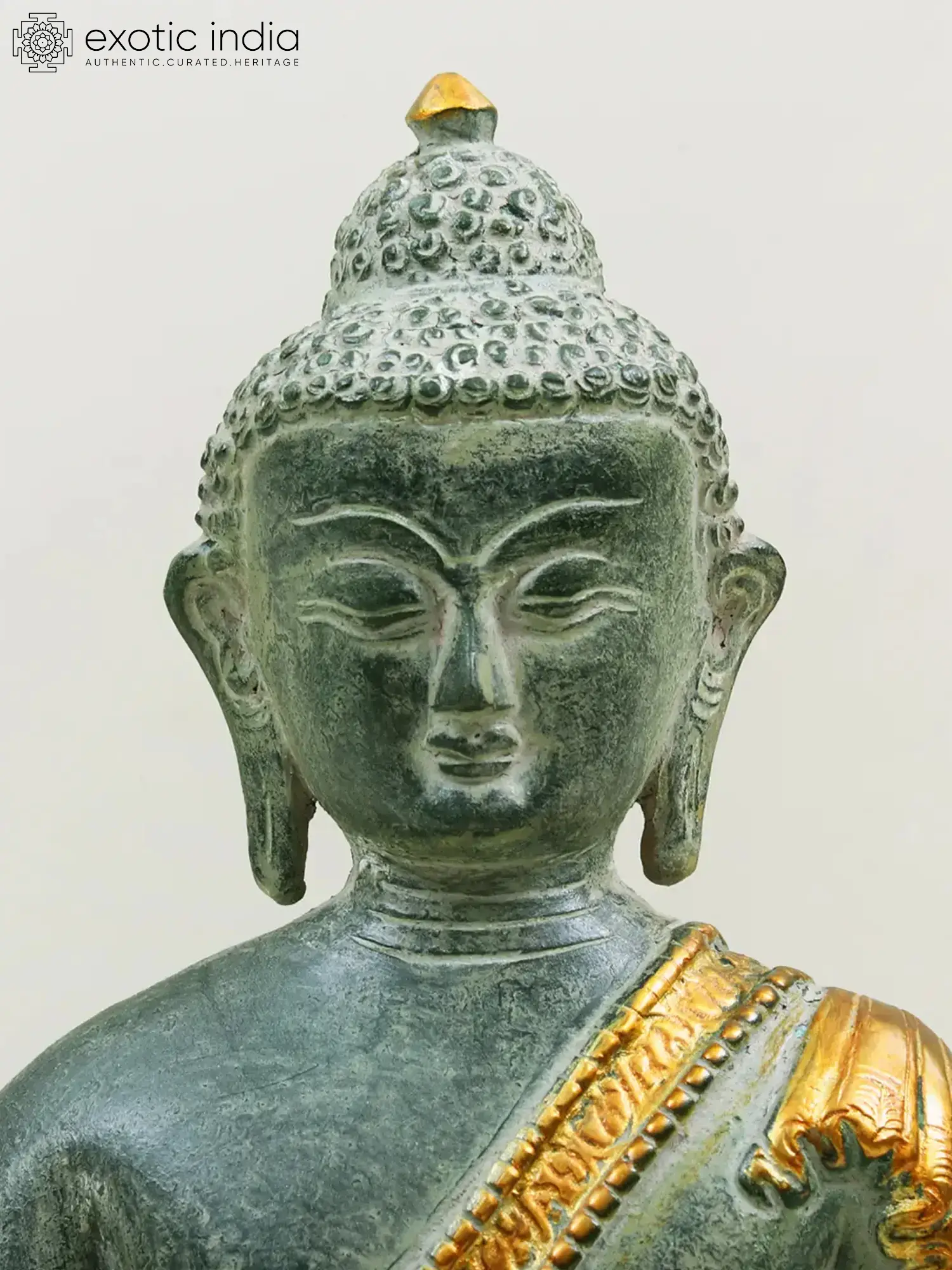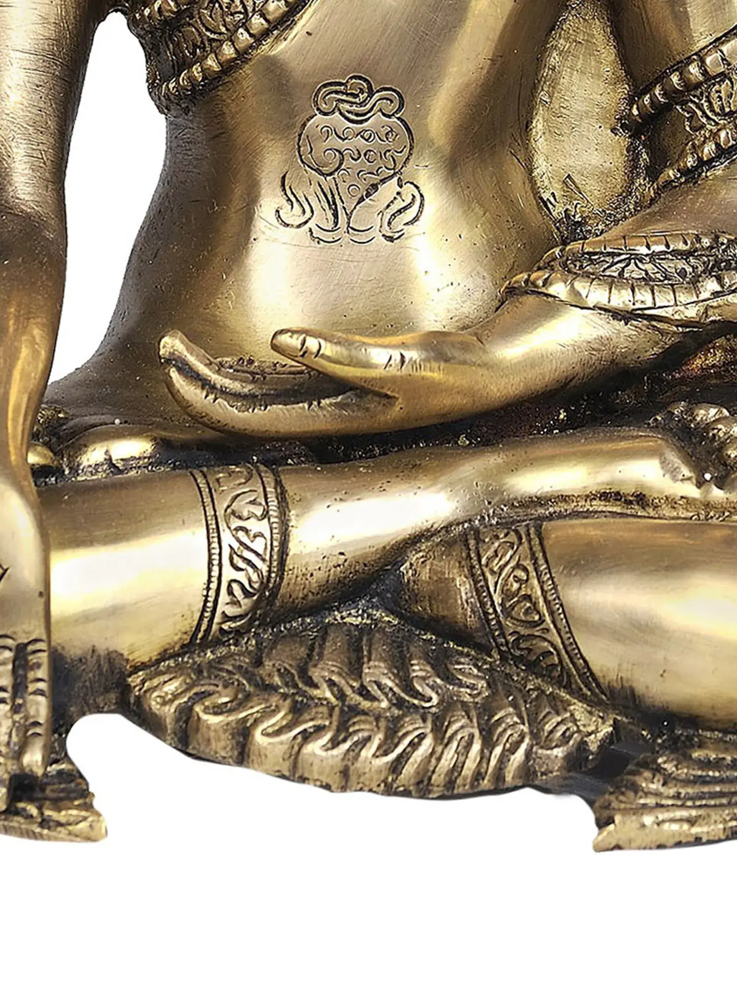 11" (Tibetan Buddhist Deity) The Medicine Buddha in Silver Hue with Golden Border Garment In Brass | Handmade | Made In India