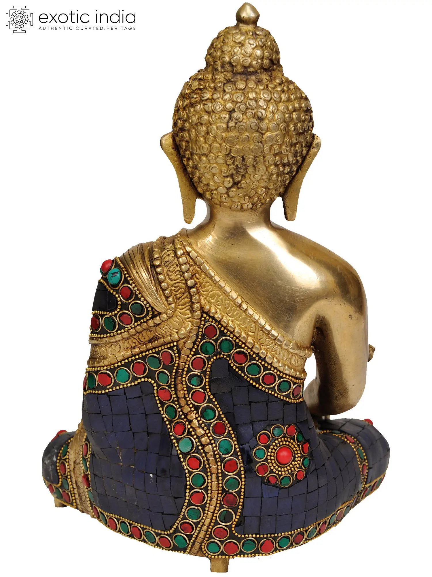 A brass Medicine Buddha statue is a striking representation of this revered figure in Tibetan Buddhism. Crafted from brass, it exudes a warm golden glow, symbolizing purity and enlightenment. The statue portrays the Medicine Buddha in a tranquil seated posture, with both hands resting on his lap, palms facing upward, radiating a sense of meditation and serenity. Adorned in traditional monastic robes that gracefully drape over his form, these robes signify his renunciation of worldly desires. Some statues feature a specific hand mudra, like the Varada Mudra, where his right hand is extended downward, symbolizing the granting of blessings and wishes.
