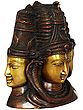 The iconographic vision of all three faces, with none showcasing such distinction as being horrifying, or young and youthful, or as endowed with a feminine touch, is almost identical : alike dimensions of faces with identical bearing, sharp straight noses, small somewhat sensuous lips, bold forms of eyes in meditative posture, thick eyelids and well trimmed eye-brows, except that those of the face on the right being larger.