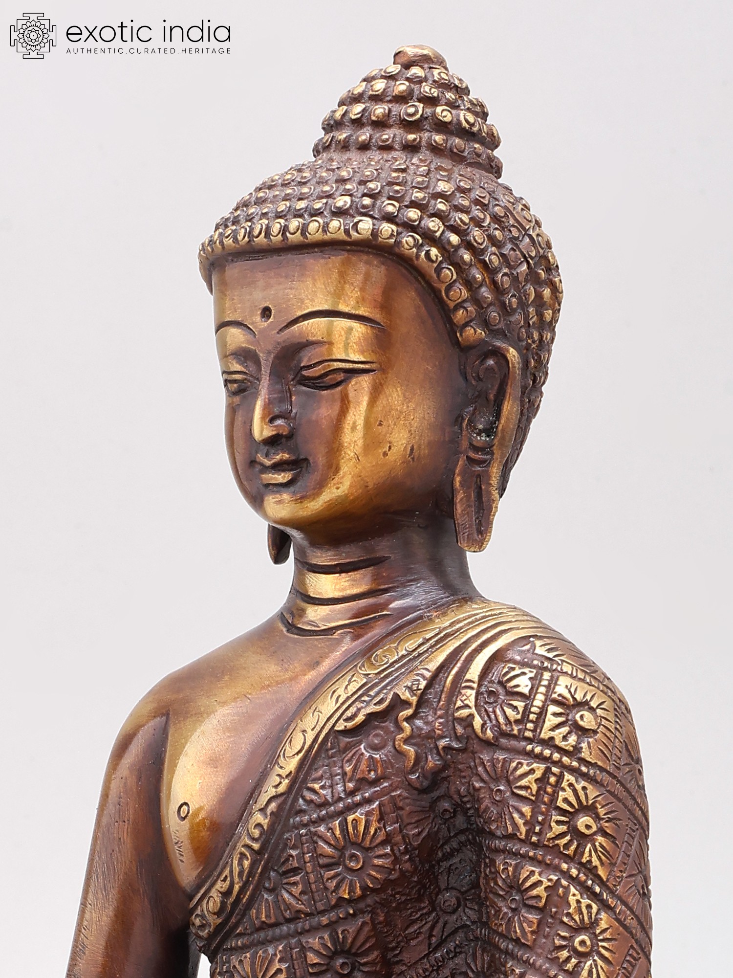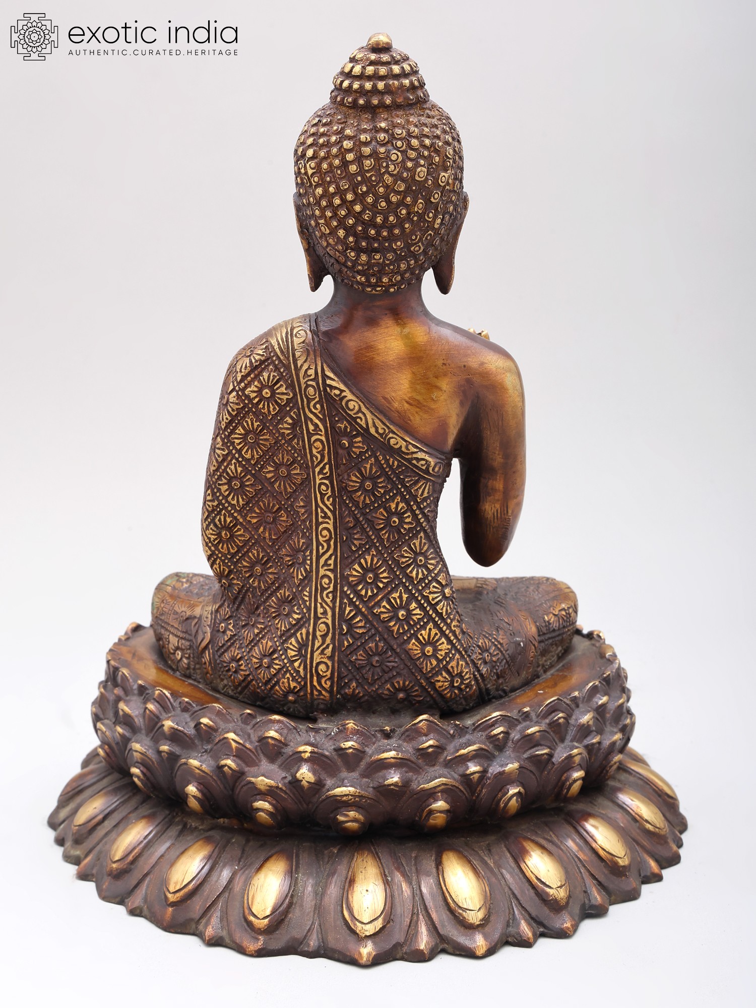 Made from pure brass, it depicts the erstwhile Shakyamuni in padmasana, a stance that is the culmination of bahiranga yoga or, in other words, of all asanas.