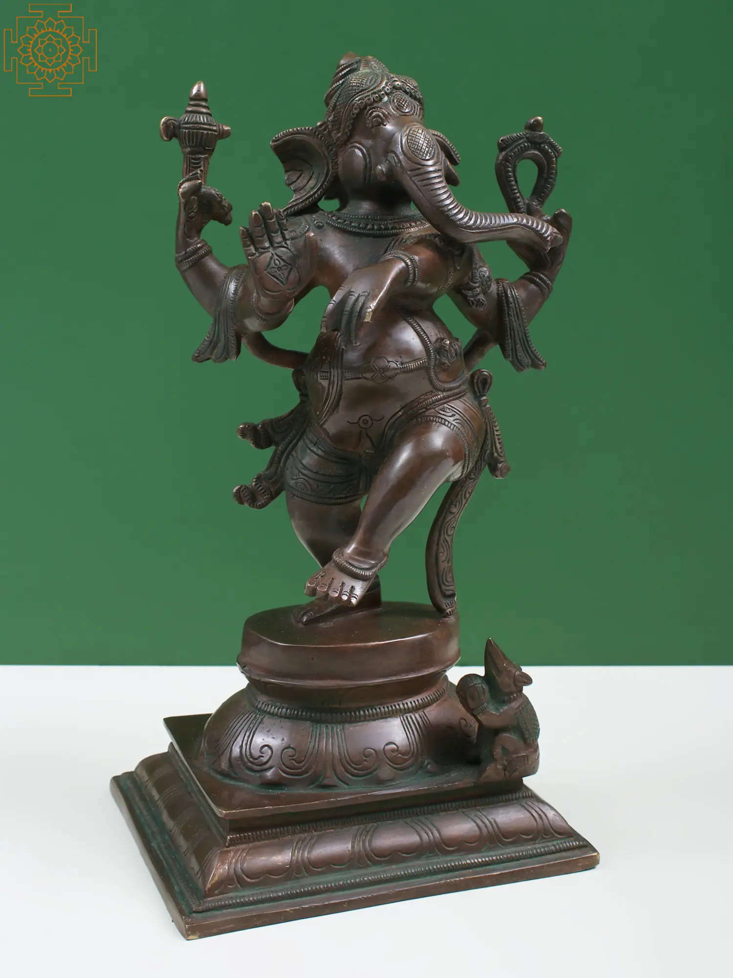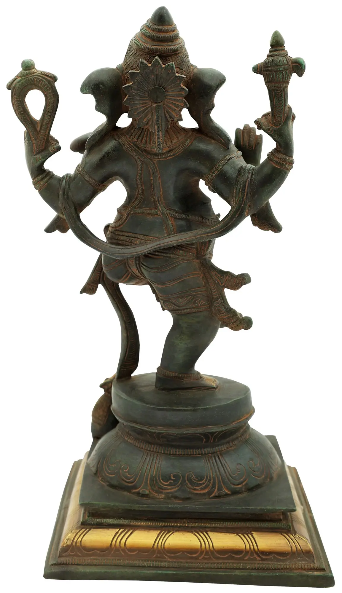 Lord Ganesha is the most widely loved baala-deva (child-deity) of the Hindu pantheon. His childlike qualities, such as innocence and wisdom and generosity with blessings, endear Him to the truly devoted. The murti that you see on this page is sculpted from pure brass and depicts the Lord in dance motion.