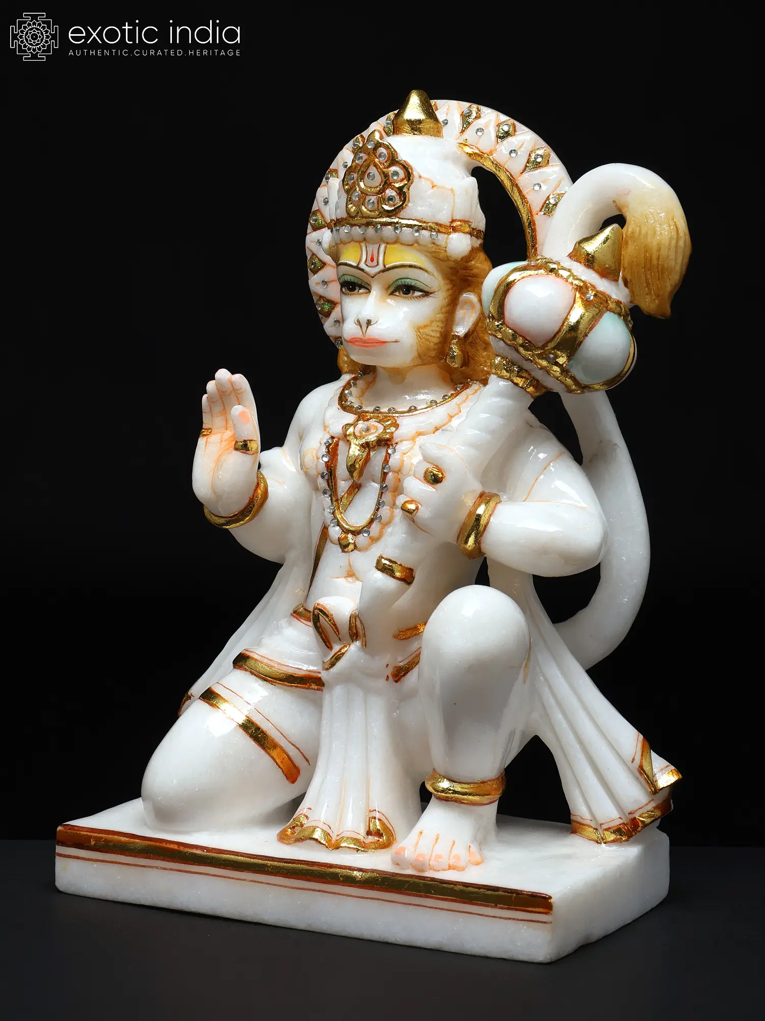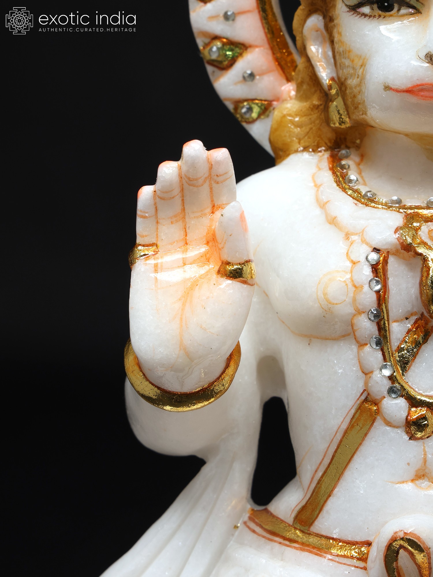 12" Ashirwad Anjaneya (Hanuman Ji) | Handmade | White Marble Hanuman Statue | Hanuman Statue Home Decor | Bajrangbali