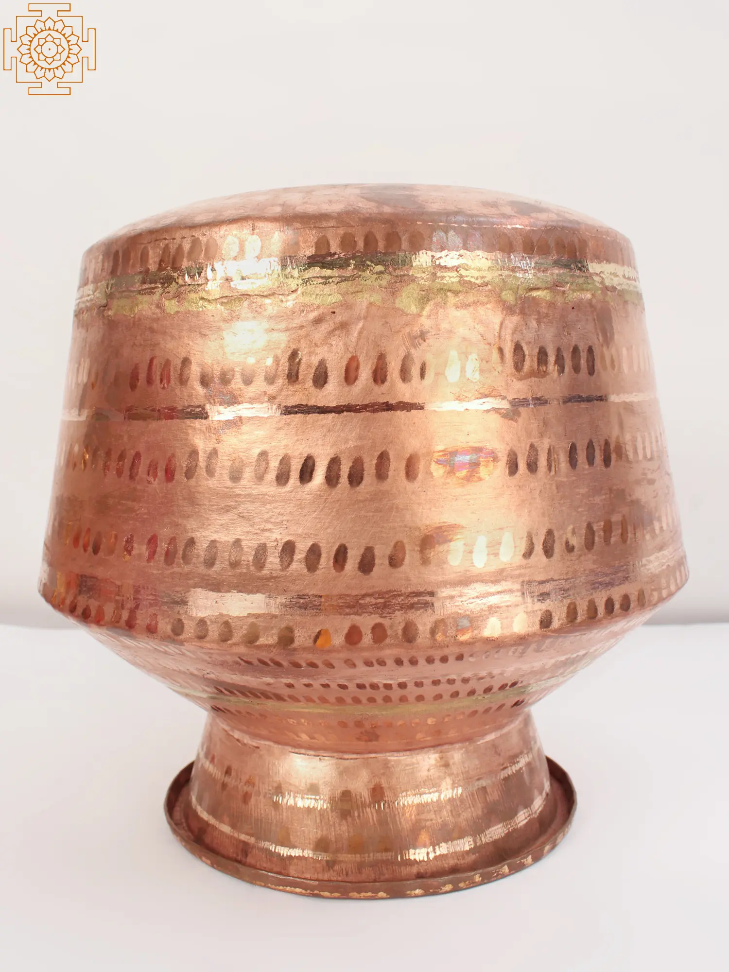 The beautiful and Authentic Copper Kalash is a sacred vessel of spiritual significance used in devotional ceremonies. In Hindu rituals, the Kalash symbolizes the universe and its divine essence. The Kalash is later adorned with coconut and mango leaves, symbolizing purity and fertility. This sacred vessel is a conduit for invoking blessings and positive energy into the lives of devotees engaging themselves in a particular ritual or spiritual ceremony.