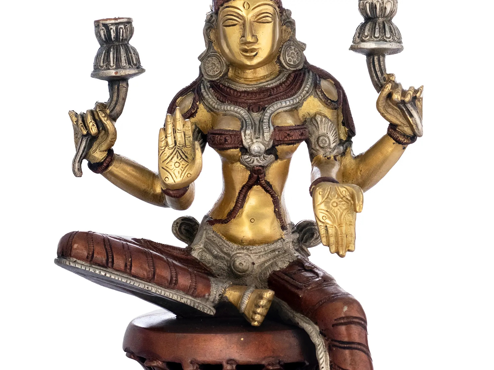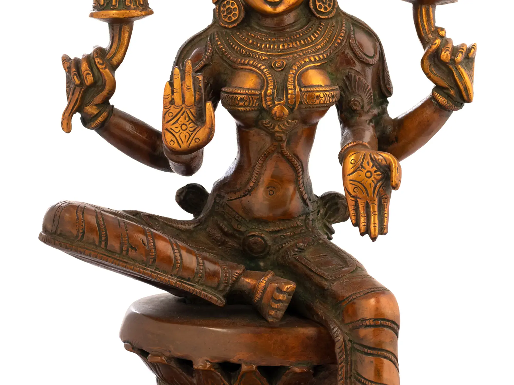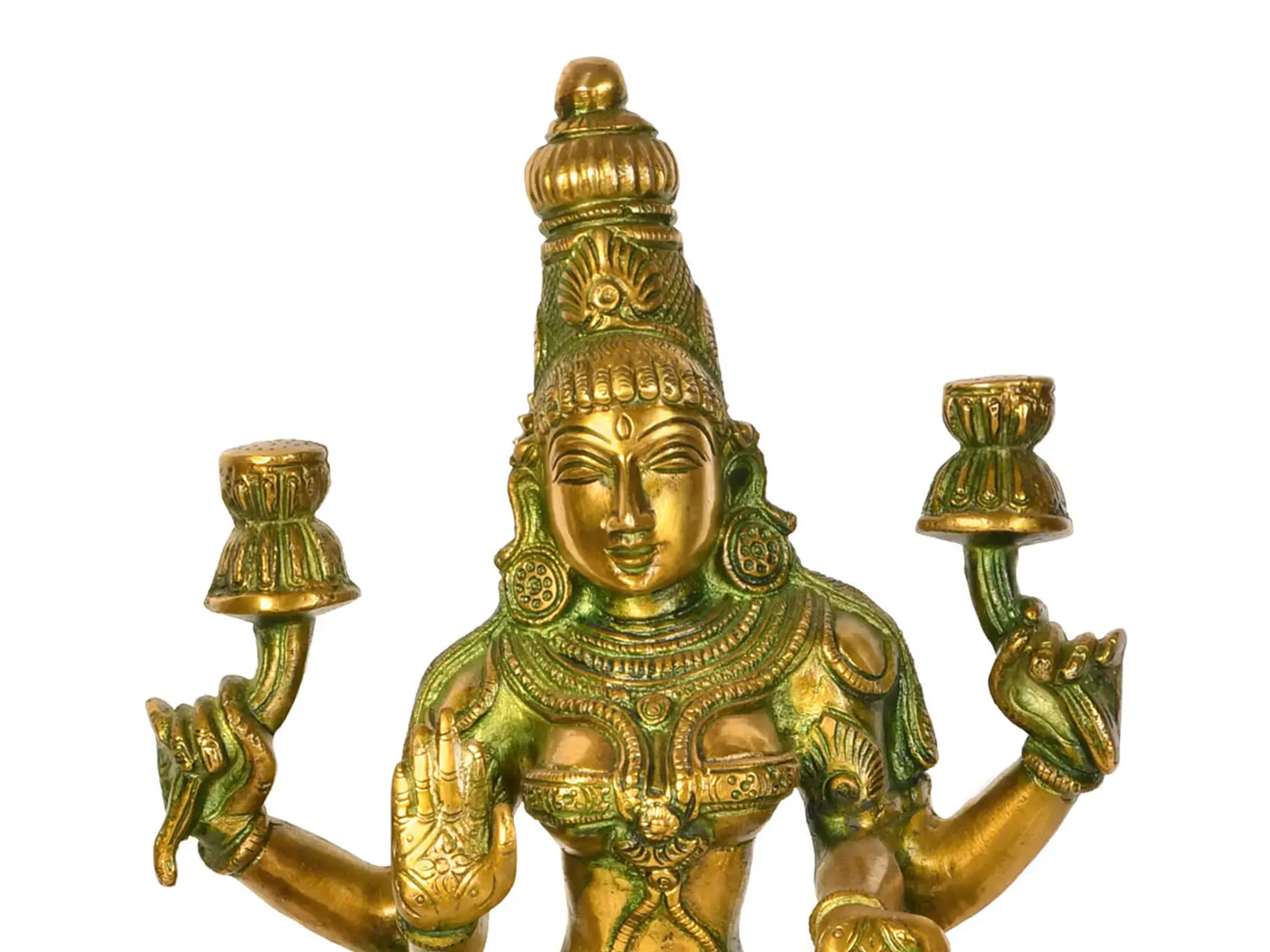 Goddess Lakshmi is the bestower of wealth and fortune. Her portrayal as visualised in the Atharva Veda signifies the interconnectedness of divine blessings and material well-being. The intricately crafted brass statue reflects the core concept of gratitude and the interplay of inner and outer abundance.