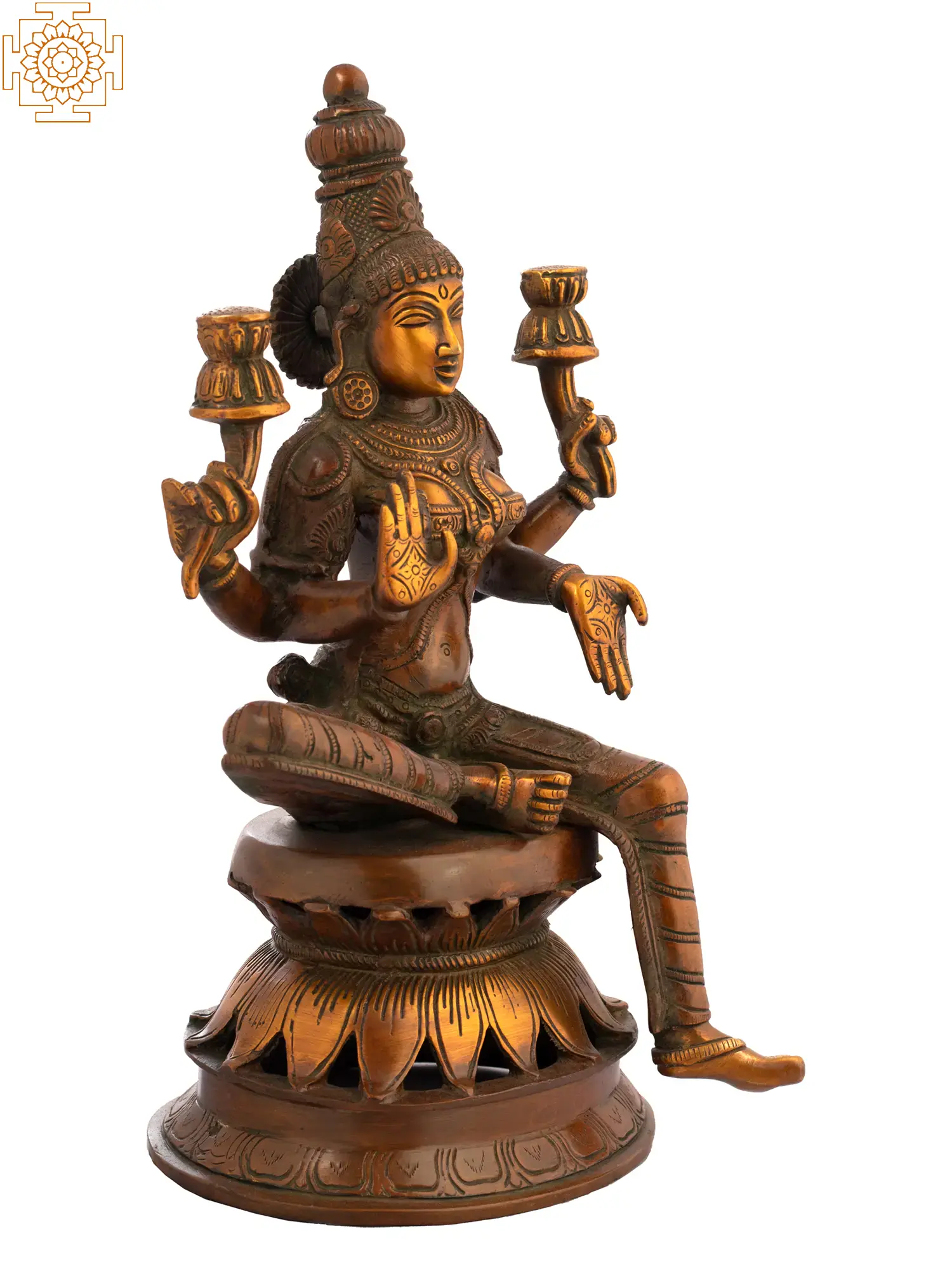 12" Brass Goddess Lakshmi Idol as Visualized in Atharva Veda | Handmade | Made in India