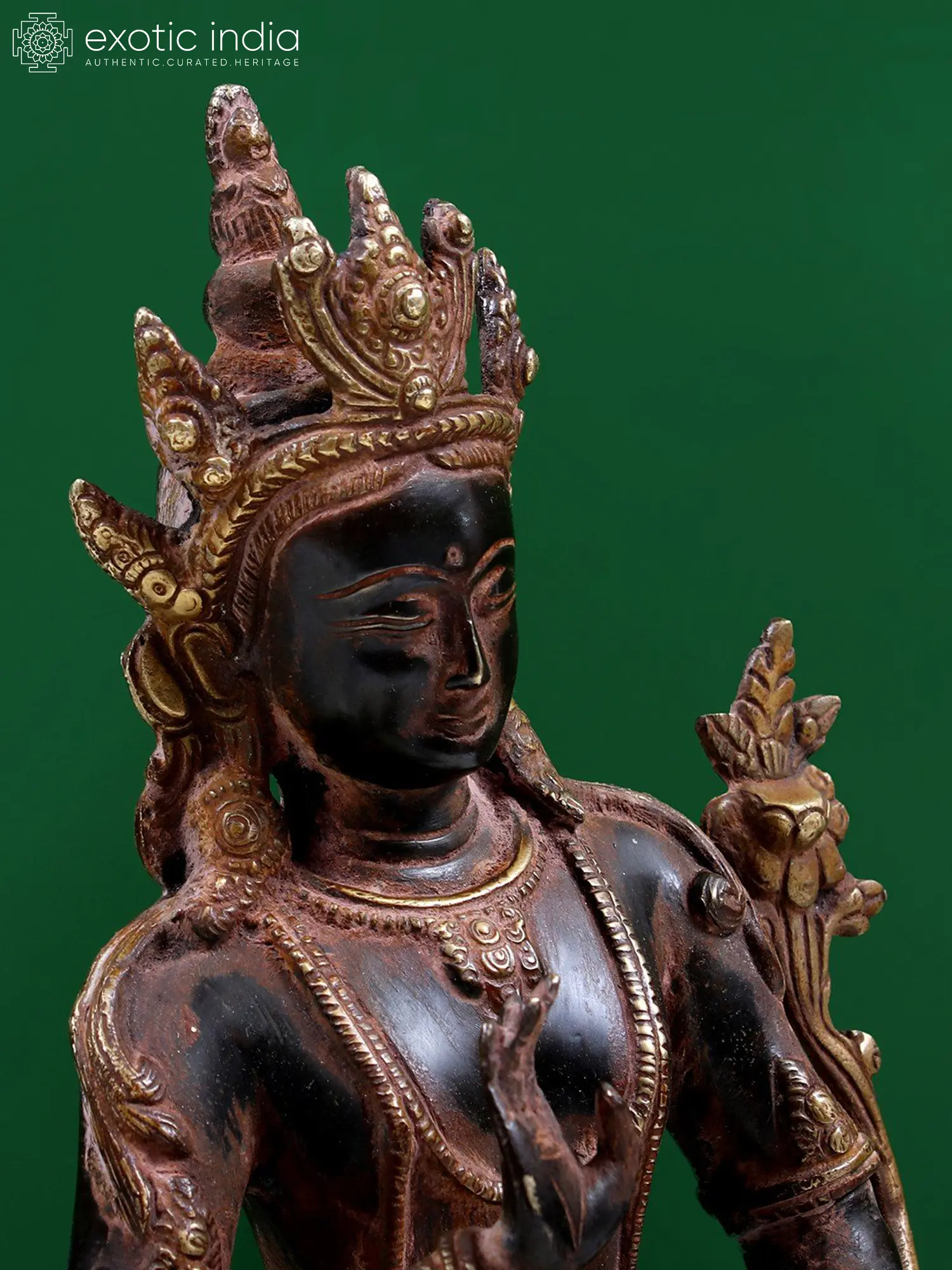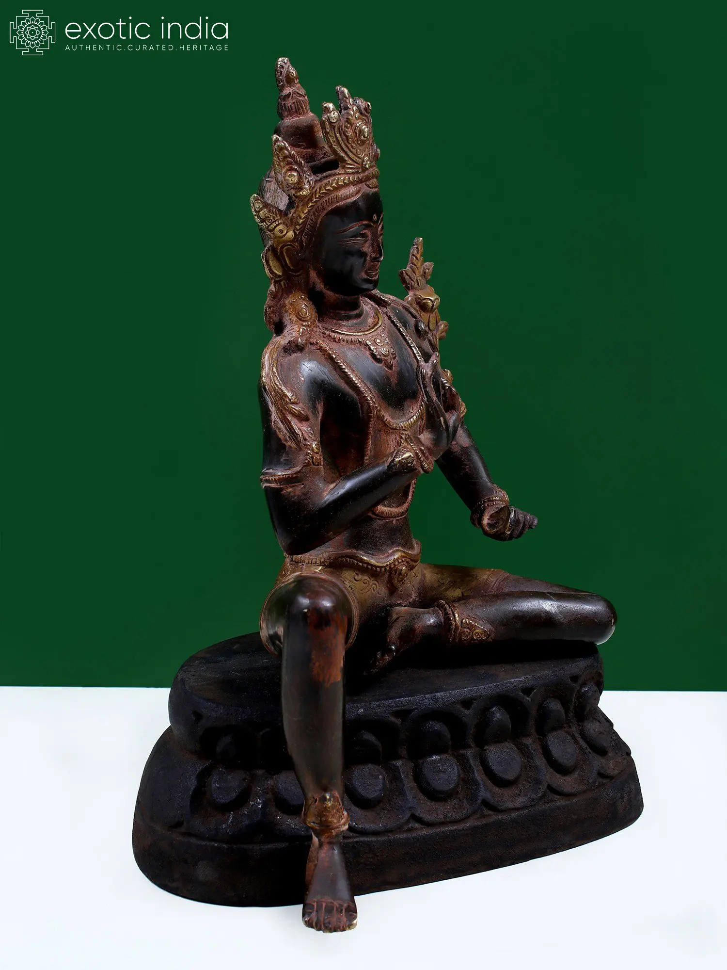 12" Brass Seated Padmapani Avalokiteshvara Idol on a Wooden Pedestal
