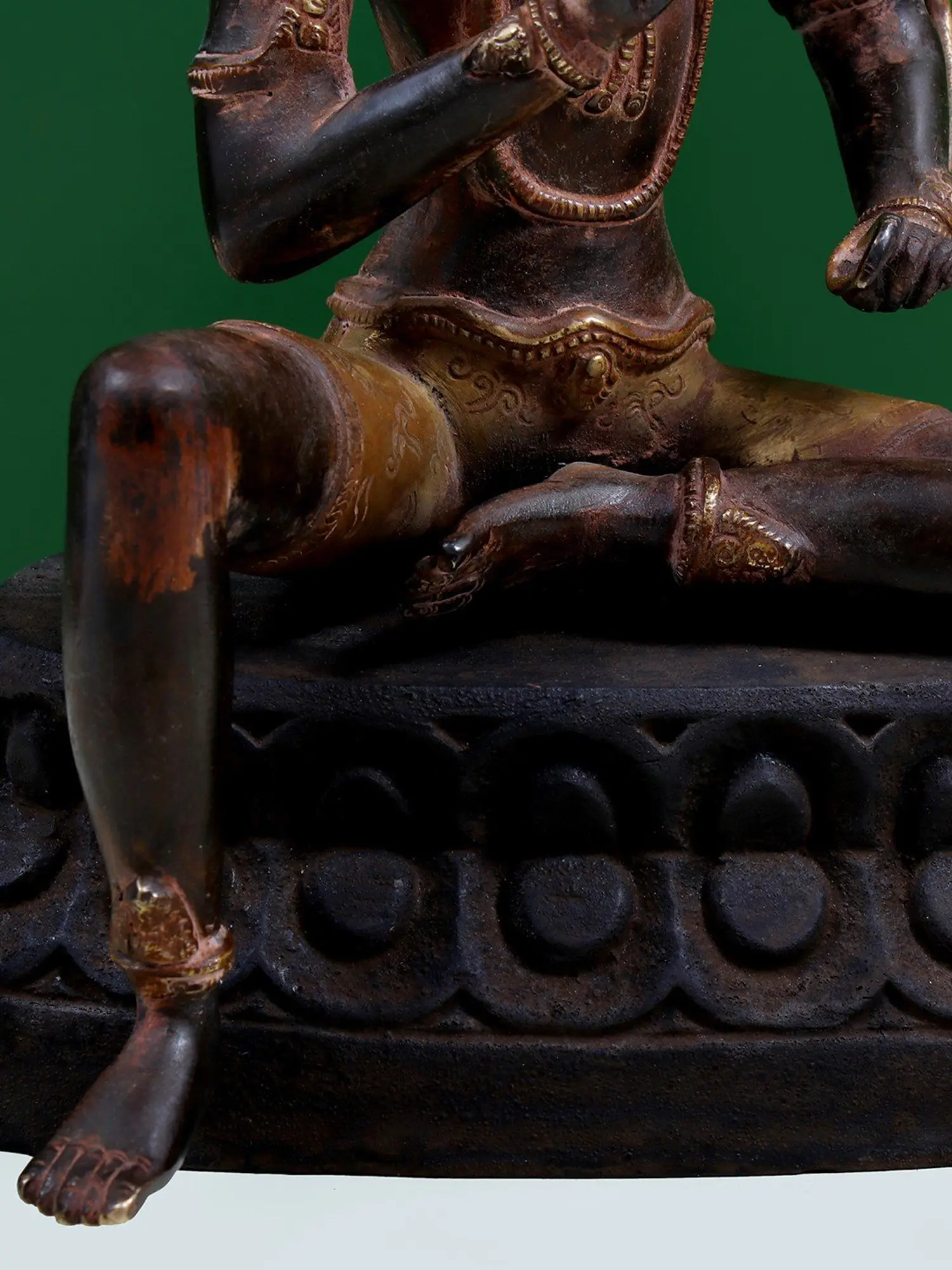 In Buddhist traditions, Avalokiteshvara is revered as the "Lord who Looks Down," a compassionate being who has vowed to save all sentient beings from suffering. The epithet "Padmapani" signifies "He who holds a lotus," a symbol of purity, spiritual awakening, and detachment from worldly desires. Legend has it that Avalokiteshvara, upon hearing the cries of the suffering world, felt such profound empathy that his head burst into a thousand pieces. Amitabha Buddha, his spiritual father, reassembled him and bestowed upon him eleven heads and a thousand arms, each with an eye in the palm, to better perceive and alleviate suffering. This particular depiction, with its tranquil posture and gentle gesture, invites contemplation of the Bodhisattva's boundless compassion and his promise to remain in the world until all beings are liberated. ––––––––––