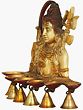 This brass ritual object of Adi Yogi Lord Shiva with a Shiva linga set atop a six-wick lamp is a sanctified ritual object that brings the lord's blessings. The six-wick lamps are lit to help with financial and property difficulties. It is often lit in honor of Tripura Sundari to obtain blessings for perpetual prosperity in the home. The picture of Lord Shiva affixed to the lamp represents all the blessings in this world. The bells attached to the lamps bring the sacred vibration of the universe. This artifact represents Lord Shiva's deep philosophy, symbolizing the cosmic balance of destruction and creation. His calm demeanor denotes inner serenity, while the lamp represents the infusion of wisdom, prosperity, and tranquility.