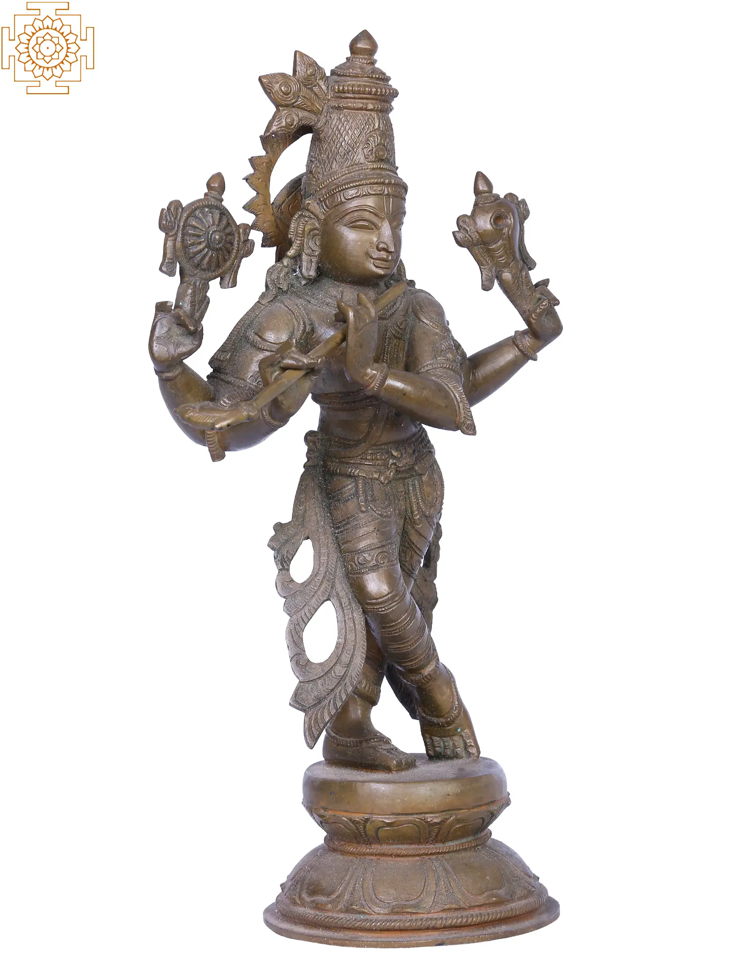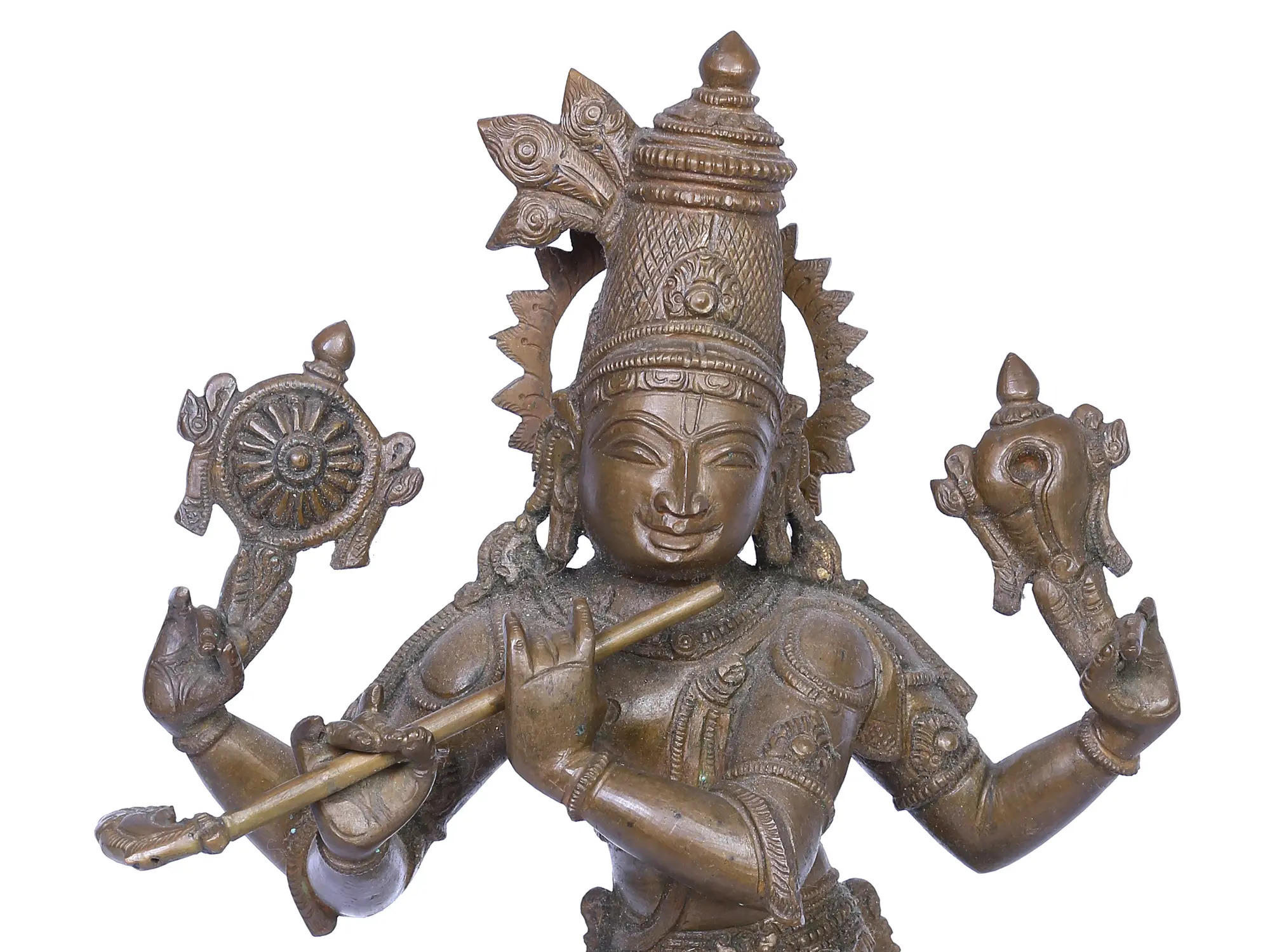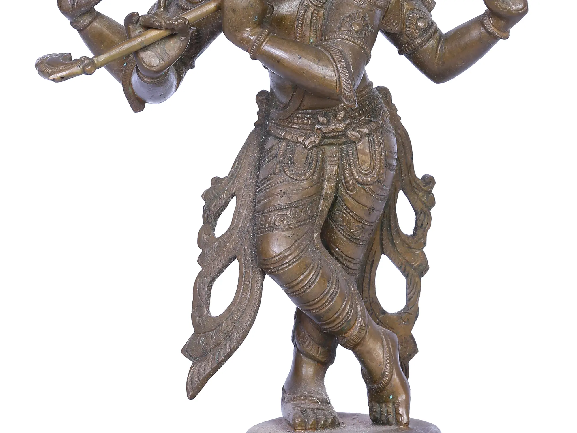 33" Large Lord Krishna Playing Flute with Kirtimukha Arch | Bronze Statue