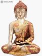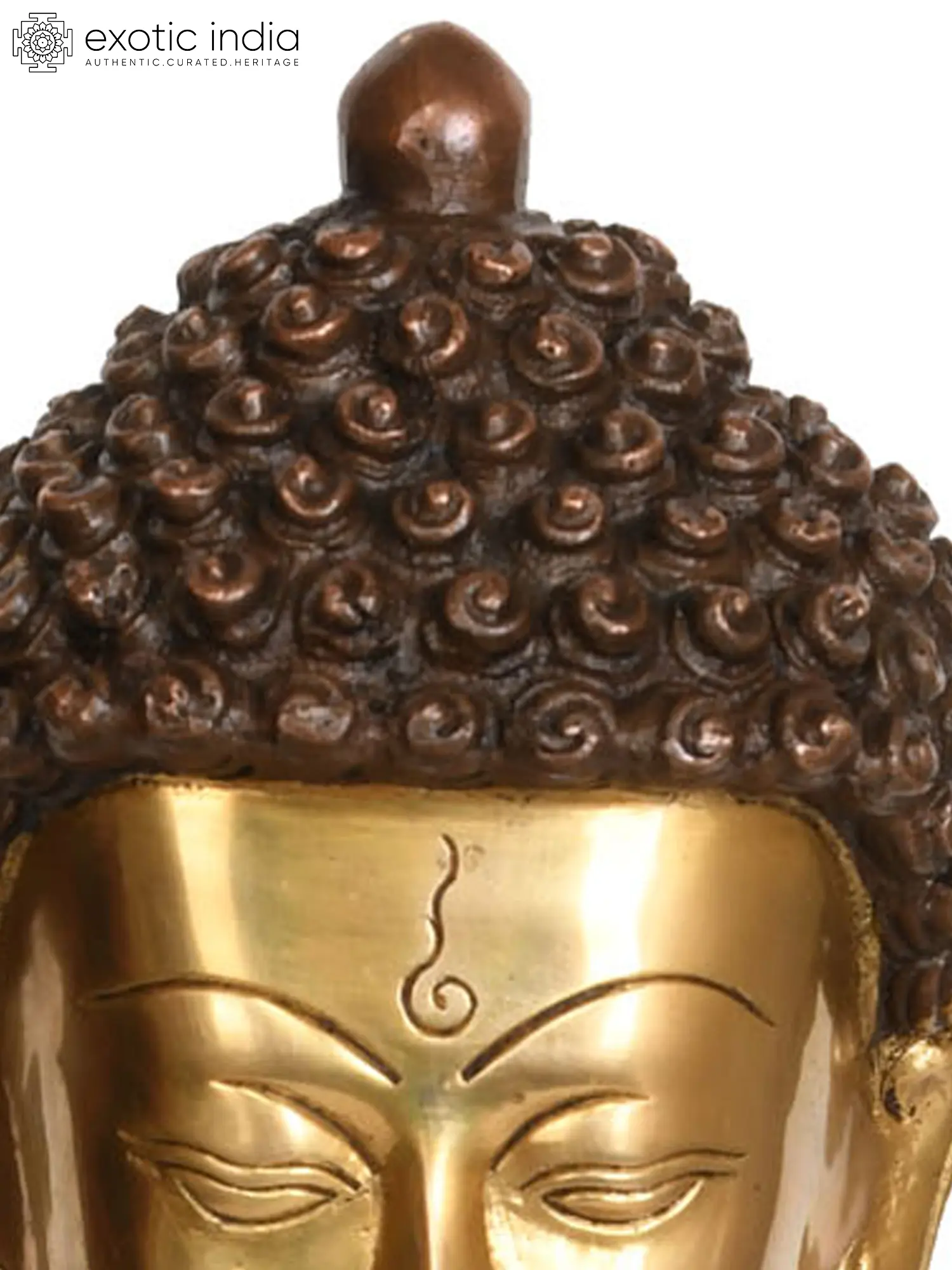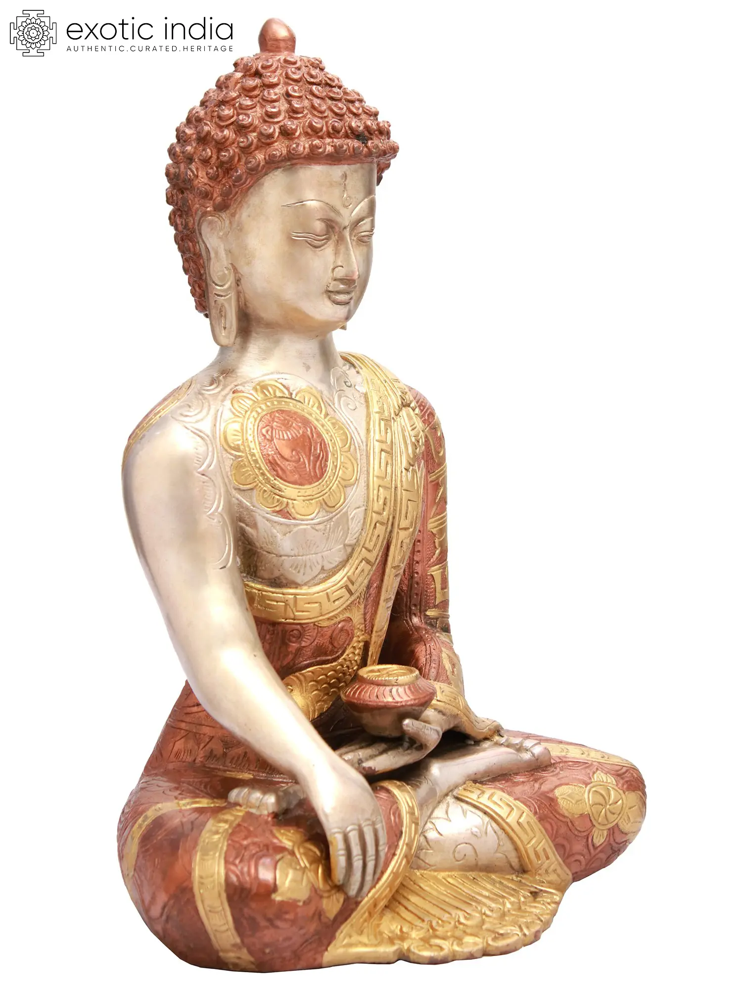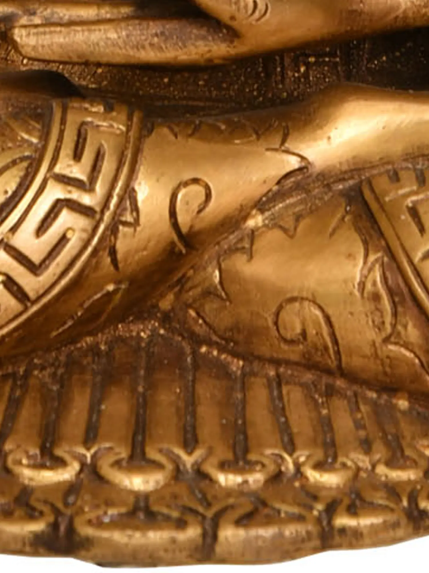 12" Buddha, His Hand In Vitark Mudra, Auspicious Symbols/Mantras On The Robe In Brass | Handmade | Made In India