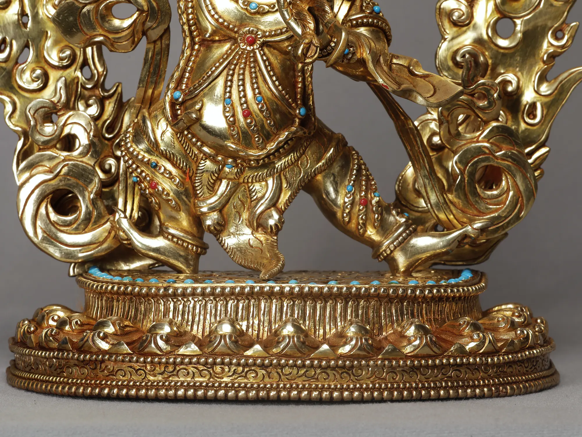 Vajrapani, a significant Bodhisattva in Buddhism, is renowned for embodying attributes of power, protection, and spiritual fortitude. The name Vajrapani translates to “Vajra in Hand,” emphasizing his association with the ritual thunderbolt, symbolizing unyielding spiritual strength. Vajrapani is depicted with dynamic and wrathful countenance, Vajarapani plays an active role in safeguarding the Dharma and guiding practitioners on their path to enlightenment.