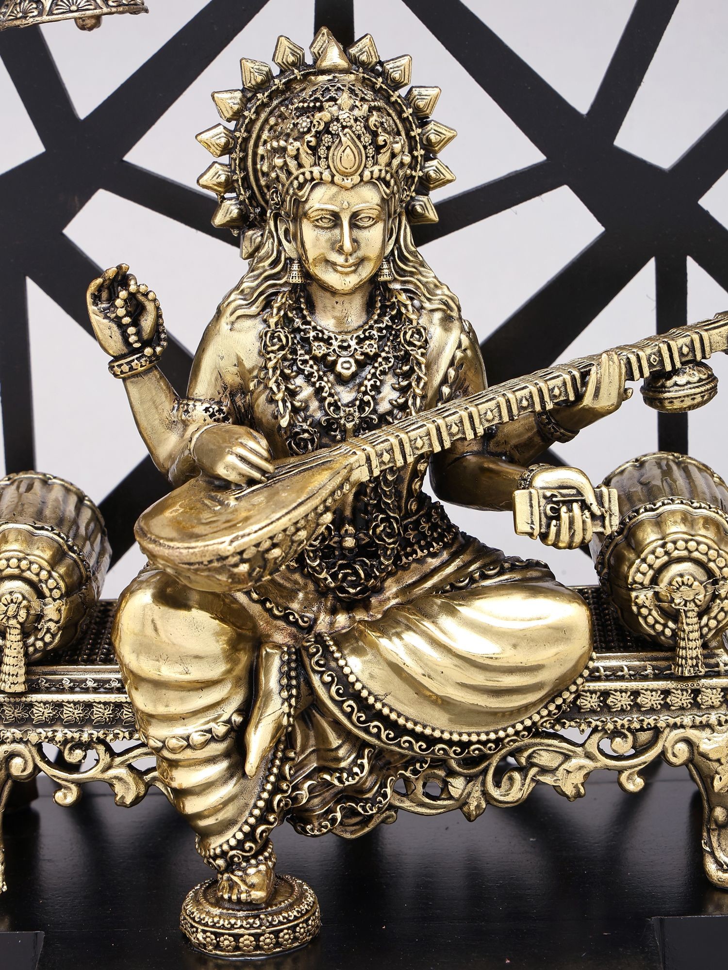 11" Saraswati Idol in Brass | Handmade | Made In India