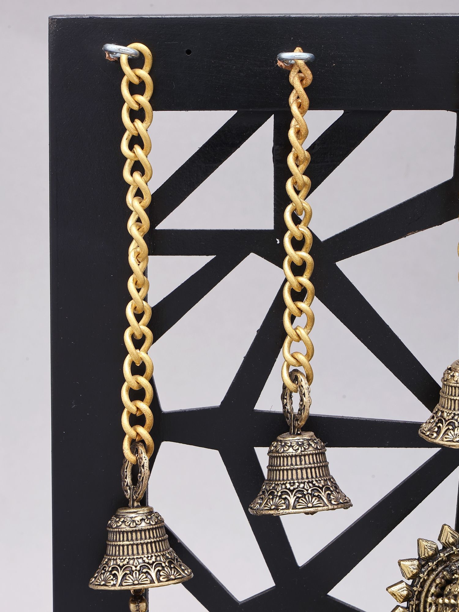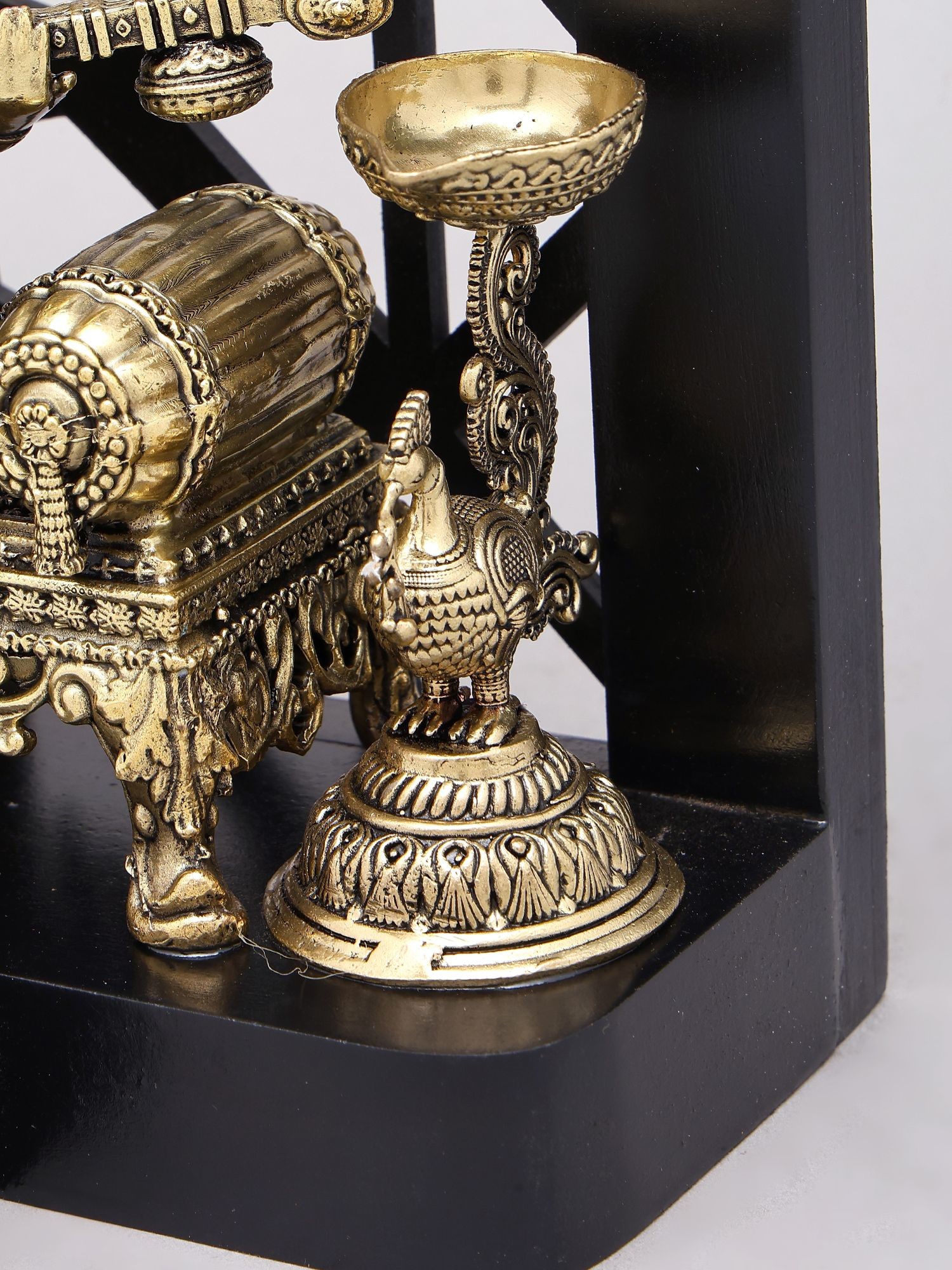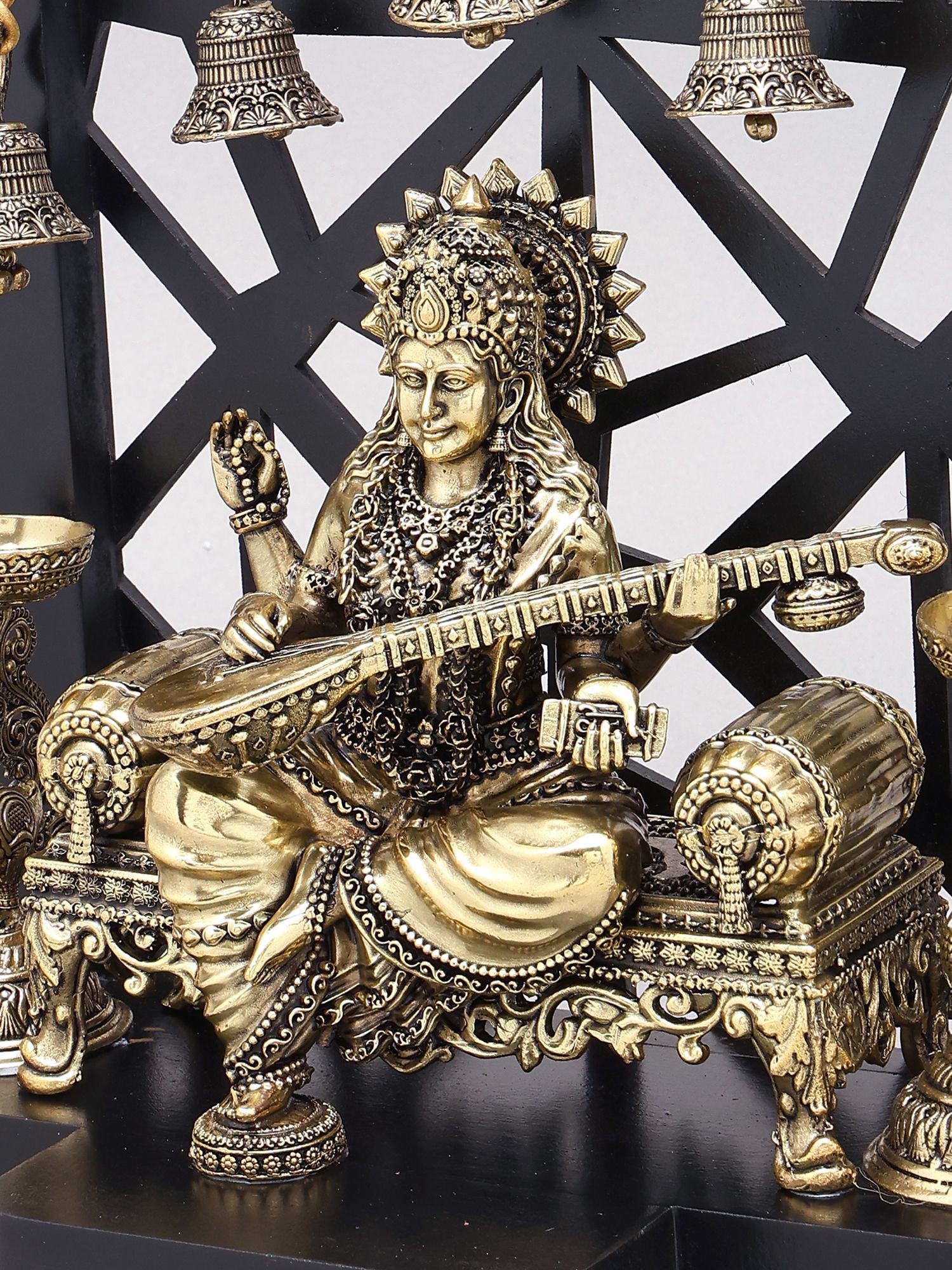 Features beautifully detailed brass bells and oil lamps for enhanced visual appeal and symbolic meaning.