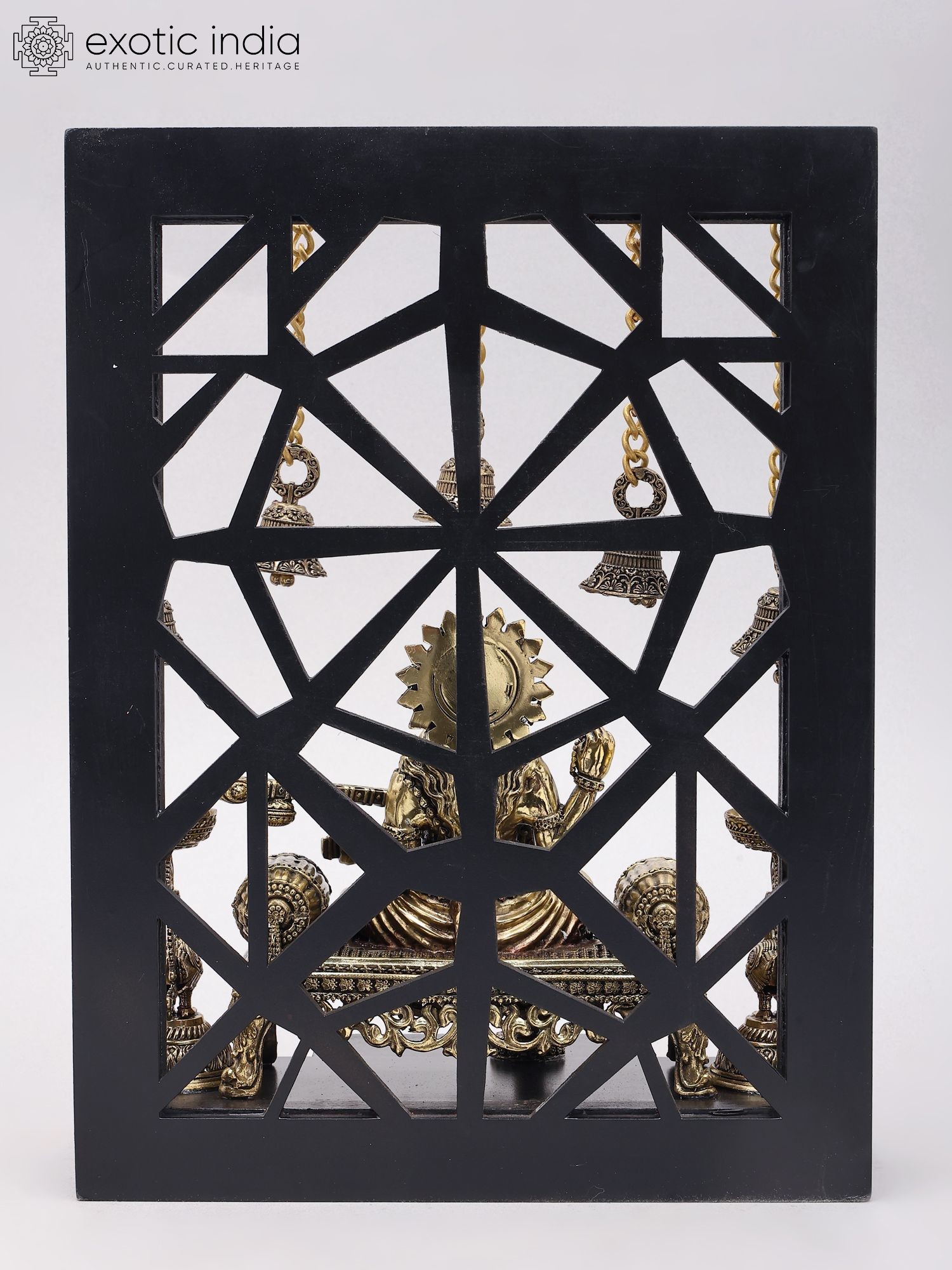 Designer Wood Framed Goddess Druga Statue in Brass with Lamps and Bells
