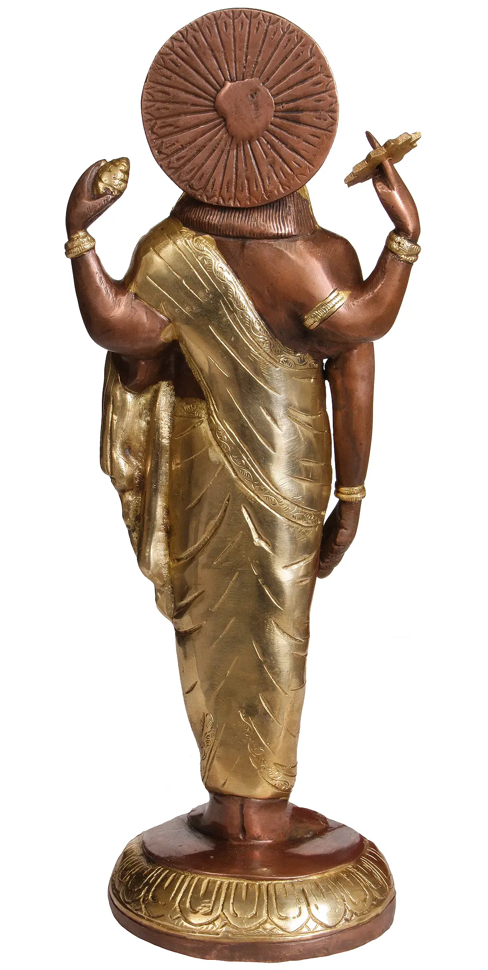 Dhanvantari, a prominent figure in Hinduism, is revered as the divine physician of the devas and is considered an incarnation of Lord Vishnu. He is celebrated as the god of Ayurveda, the ancient system of medicine. During his earthly incarnation, Dhanvantari ruled as the King of Kashi, known today as Varanasi. Additionally, he is recognized as the great-grandfather of Divodasa, a legendary King of Kashi mentioned in the Vishnu Purana. With meticulous attention to detail, the statue portrays Dhanvantari's four hands, carrying the sacred conch, discus, a leech, and a vessel brimming with the elixir of immortality. His presence exudes the grace and power of ancient Ayurvedic knowledge. This statue is a testament to the rich heritage of healing and offers a touch of spiritual serenity to your home or sacred space.