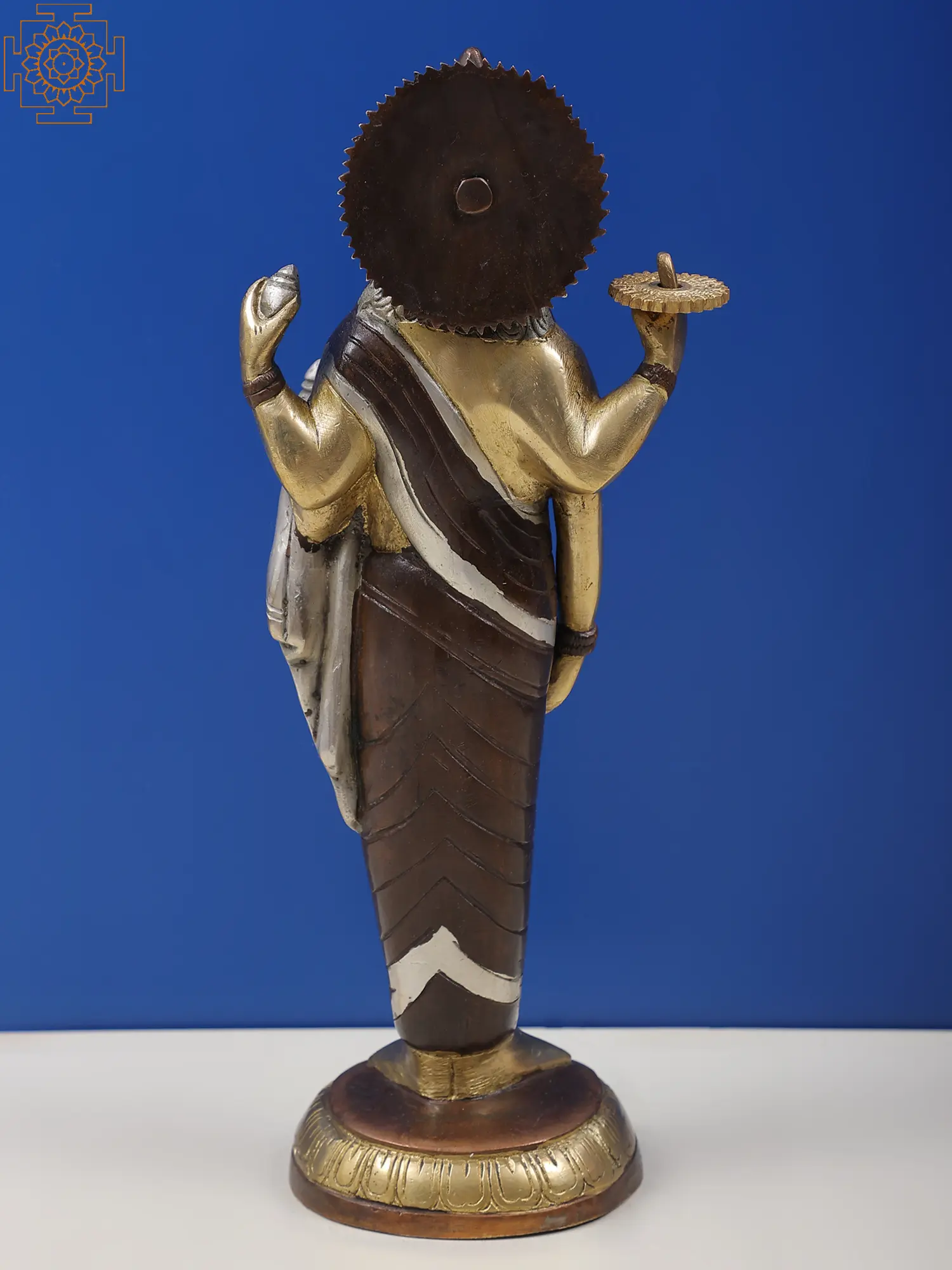 Delve into the ancient wisdom of Ayurveda and the healing arts with this exquisite brass sculpture of Dhanvantari, the Physician of Gods. Dhanvantari, with his calming aura and the pot of nectar, is the divine origin of Ayurvedic medicine and holistic healing. The intricate detailing, from his posture to the sacred items he holds, reflects the artisan's dedication to preserving the wisdom of ancient healing. Invoking the presence of Dhanvantari symbolises the pursuit of health, well-being, and the balance of body and mind. This brass sculpture serves as a source of inspiration and a reminder of the profound philosophy that holistic health and well-being are essential on life's journey.