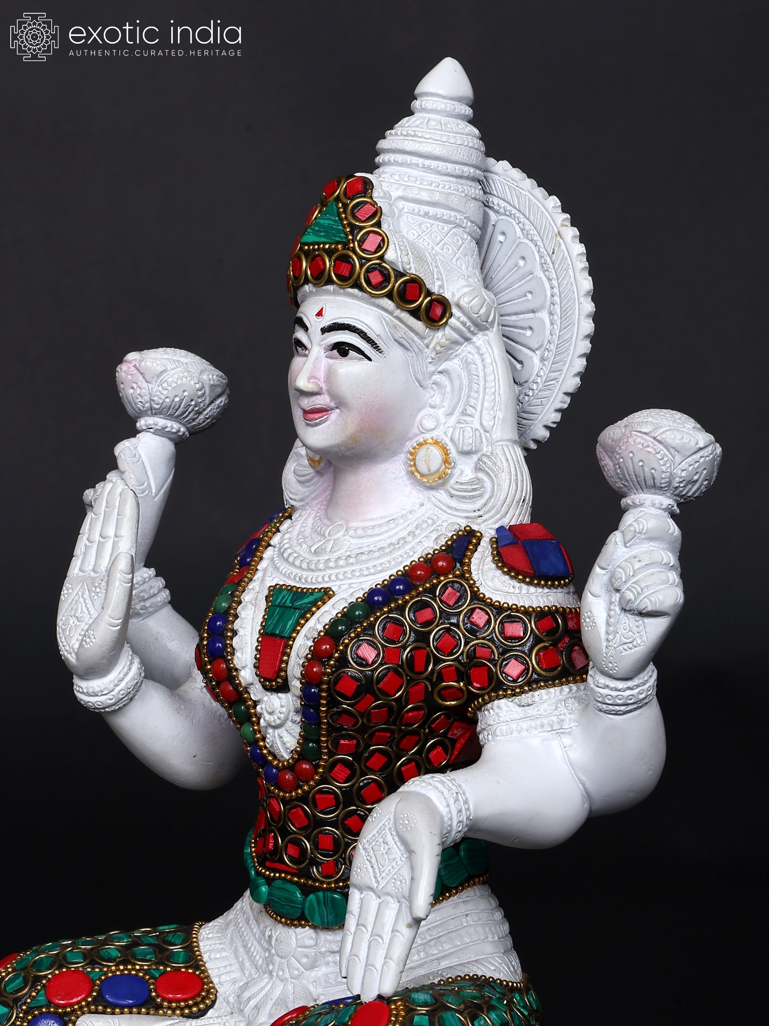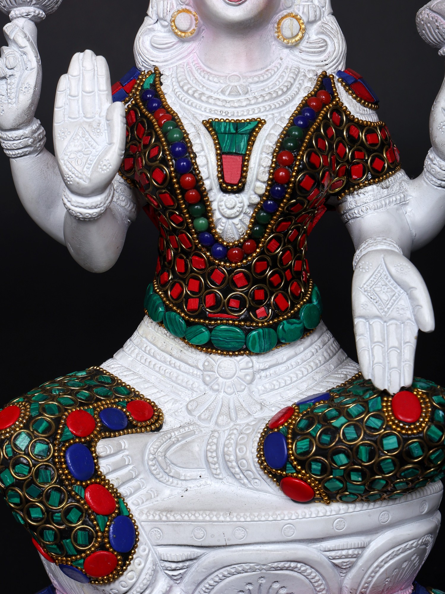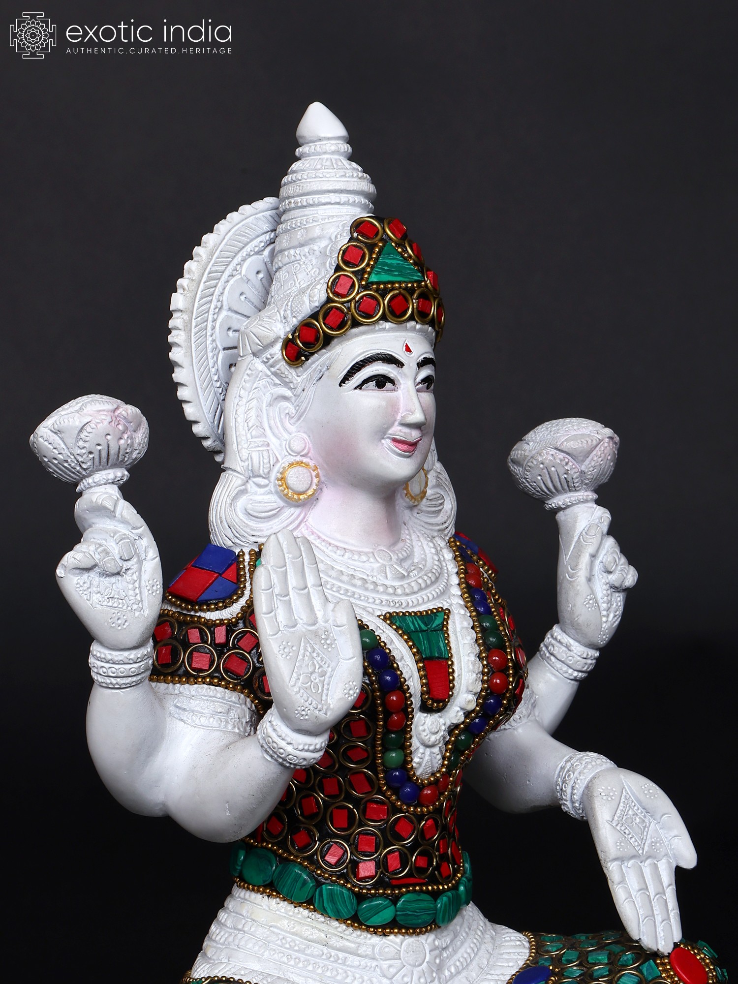 12" Exquisite Goddess Lakshmi Statue in Brass with Inlay Work