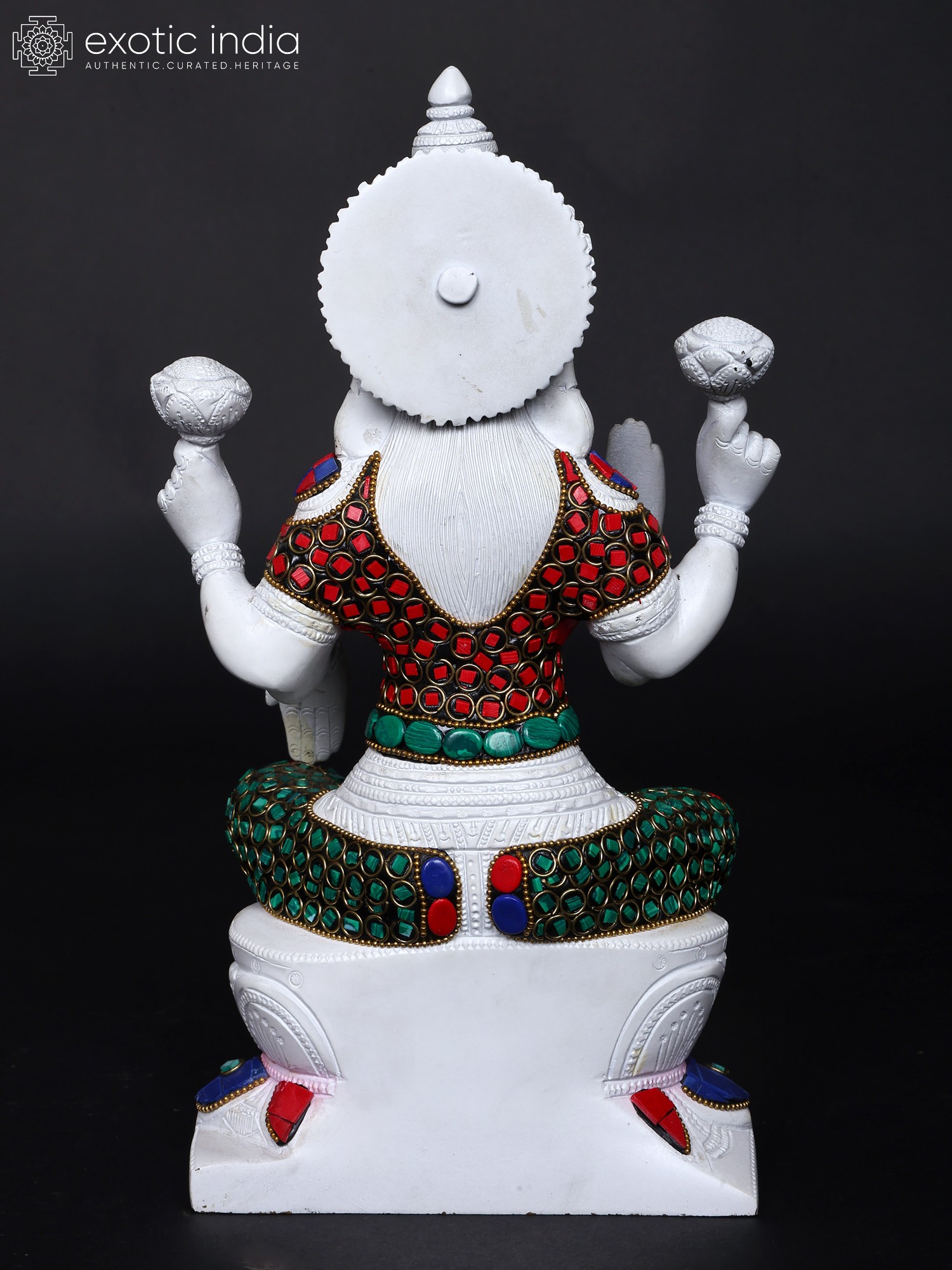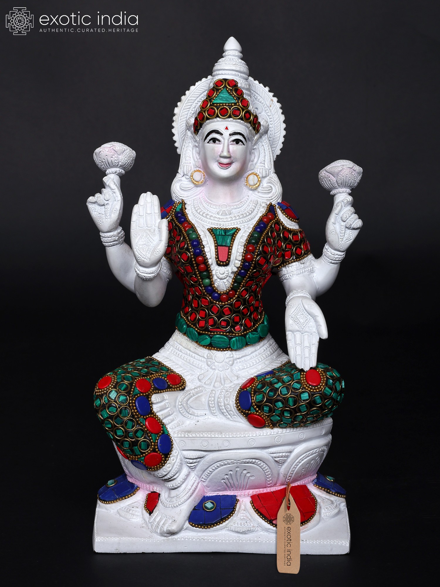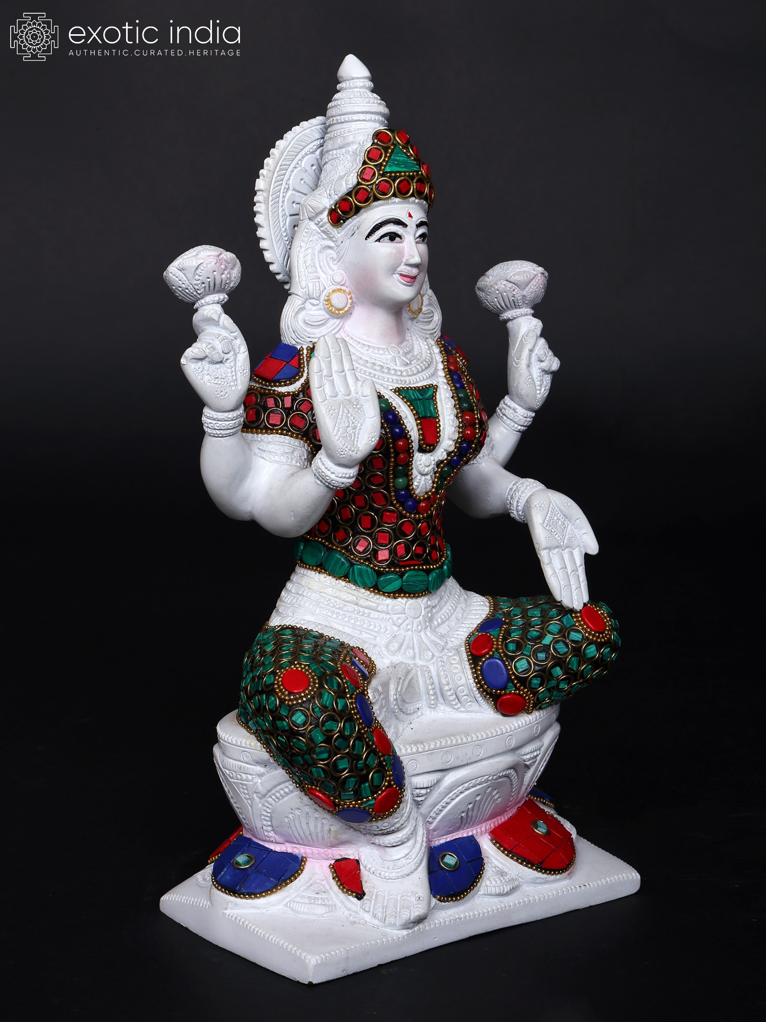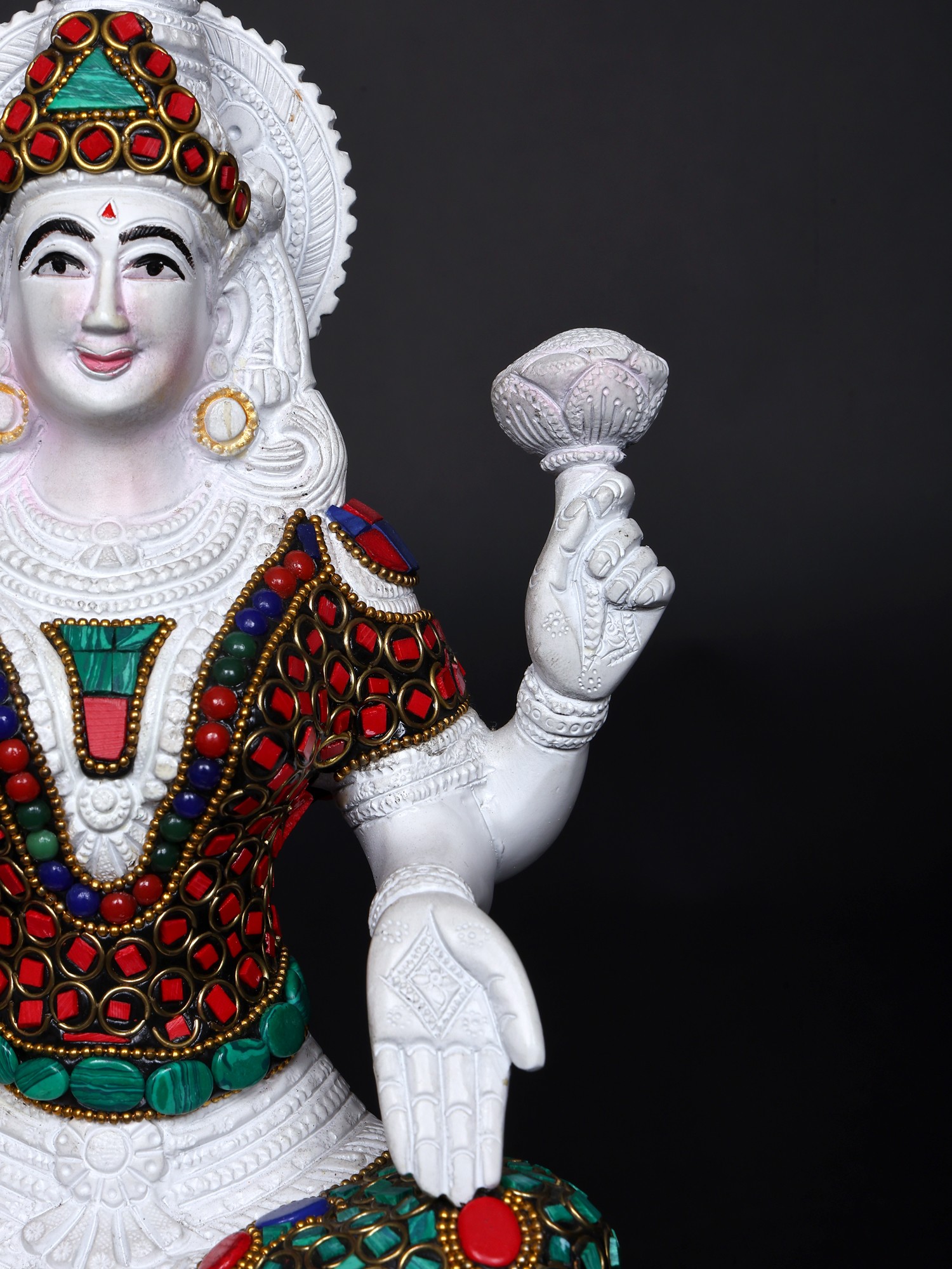 12" Exquisite Goddess Lakshmi Statue in Brass with Inlay Work