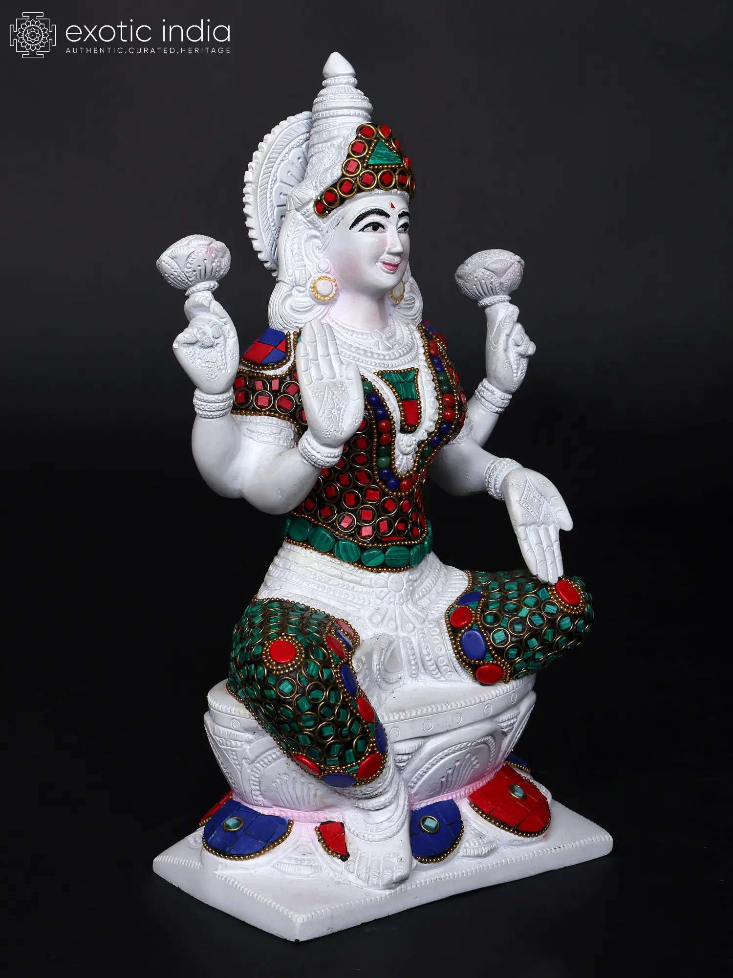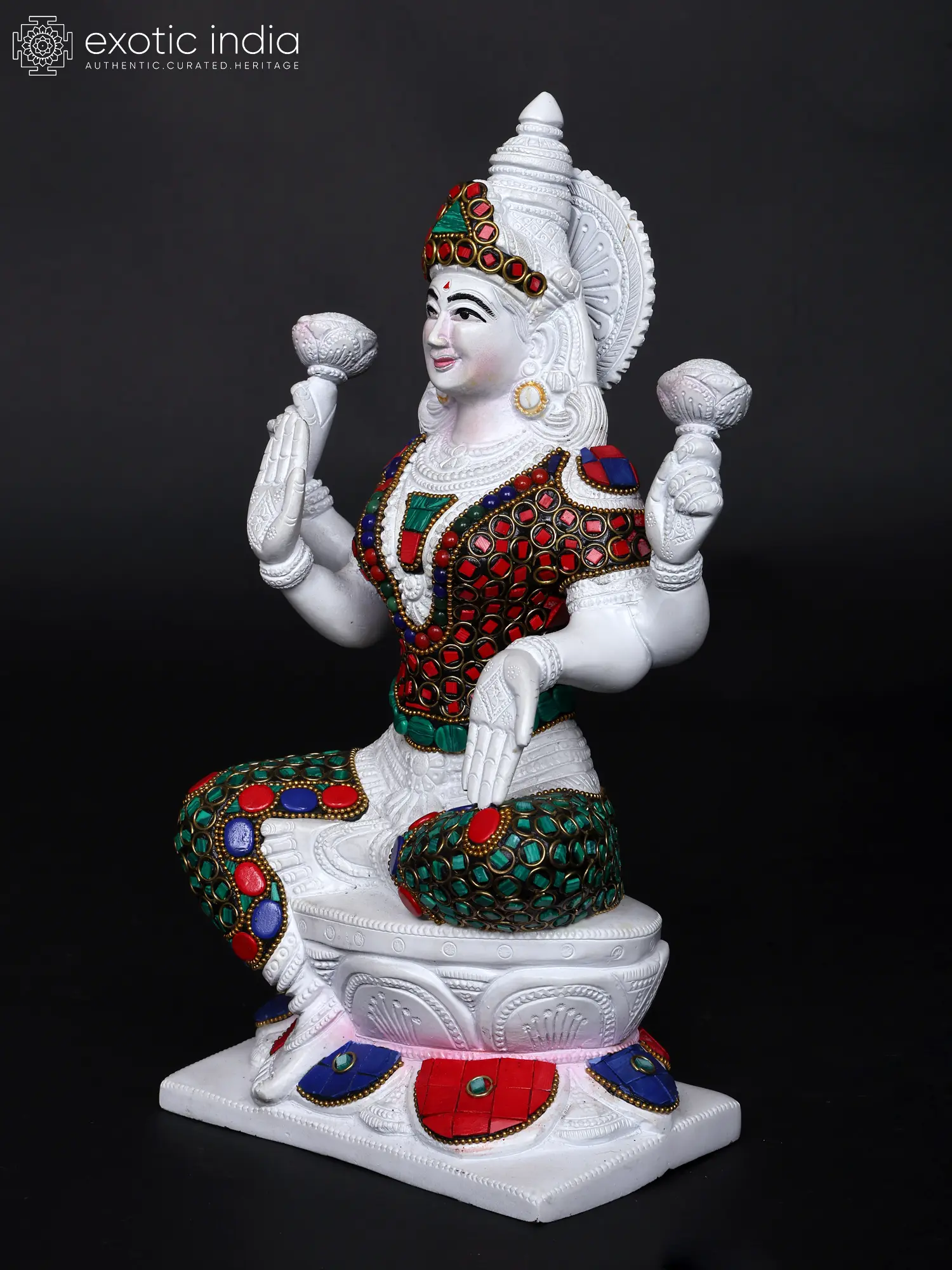 12" Goddess Lakshmi Seated on Lotus | Brass Goddess Lakshmi | Brass Statue | Handmade | Made In India