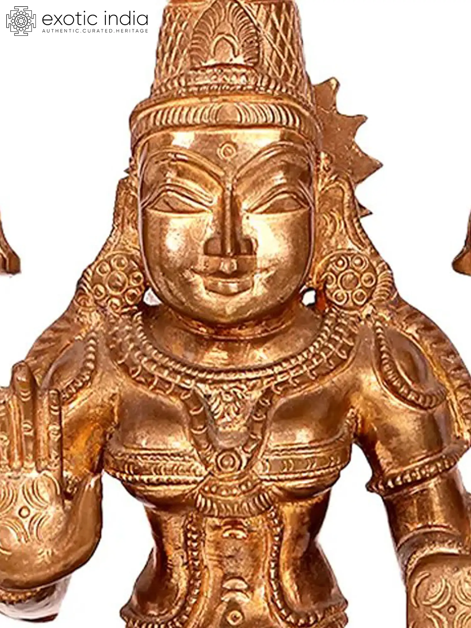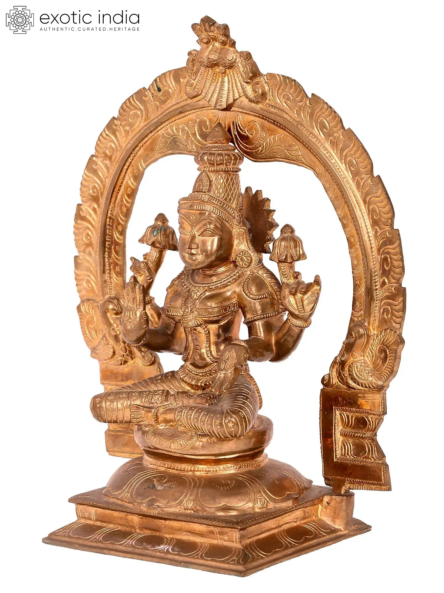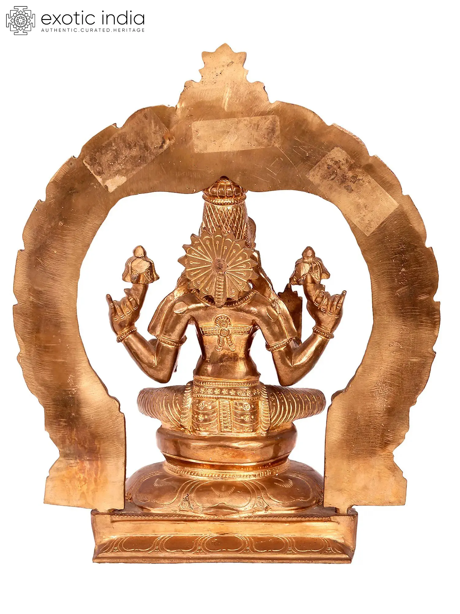 Invoke prosperity and serenity with our Goddess Lakshmi in Padmasana sculpture, a divine creation through Madhuchista Vidhanam in Swamimalai's Panchaloha Bronze. This piece beautifully portrays Goddess Lakshmi seated in the lotus position, symbolising purity and abundance. Beyond its artistic finesse, the sculpture embodies the Hindu philosophical concept of 'Divine Serenity,' signifying Lakshmi's role as the bestower of peace and prosperity. The lost-wax technique intricately details the goddess, inviting you to welcome the benevolent energy of Lakshmi into your space and embrace the serenity of divine blessings.