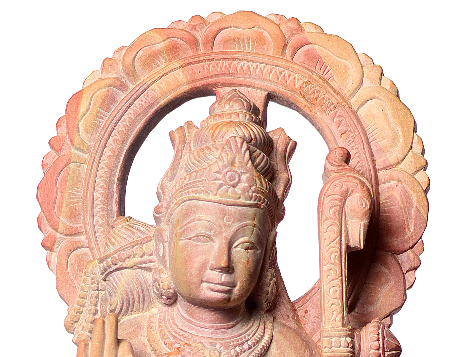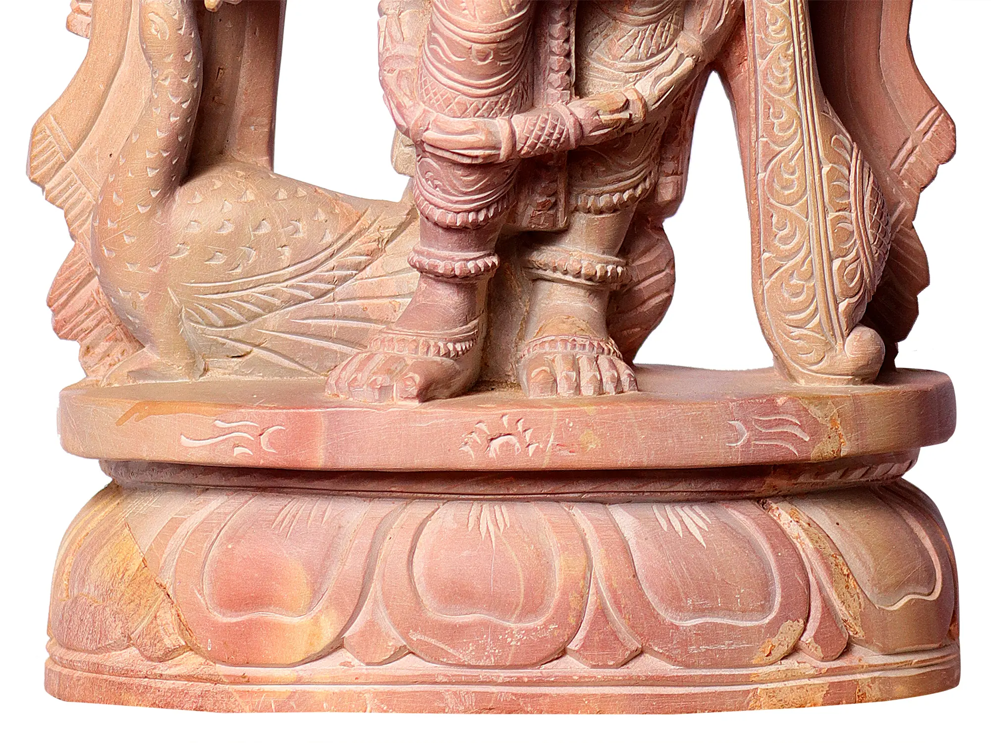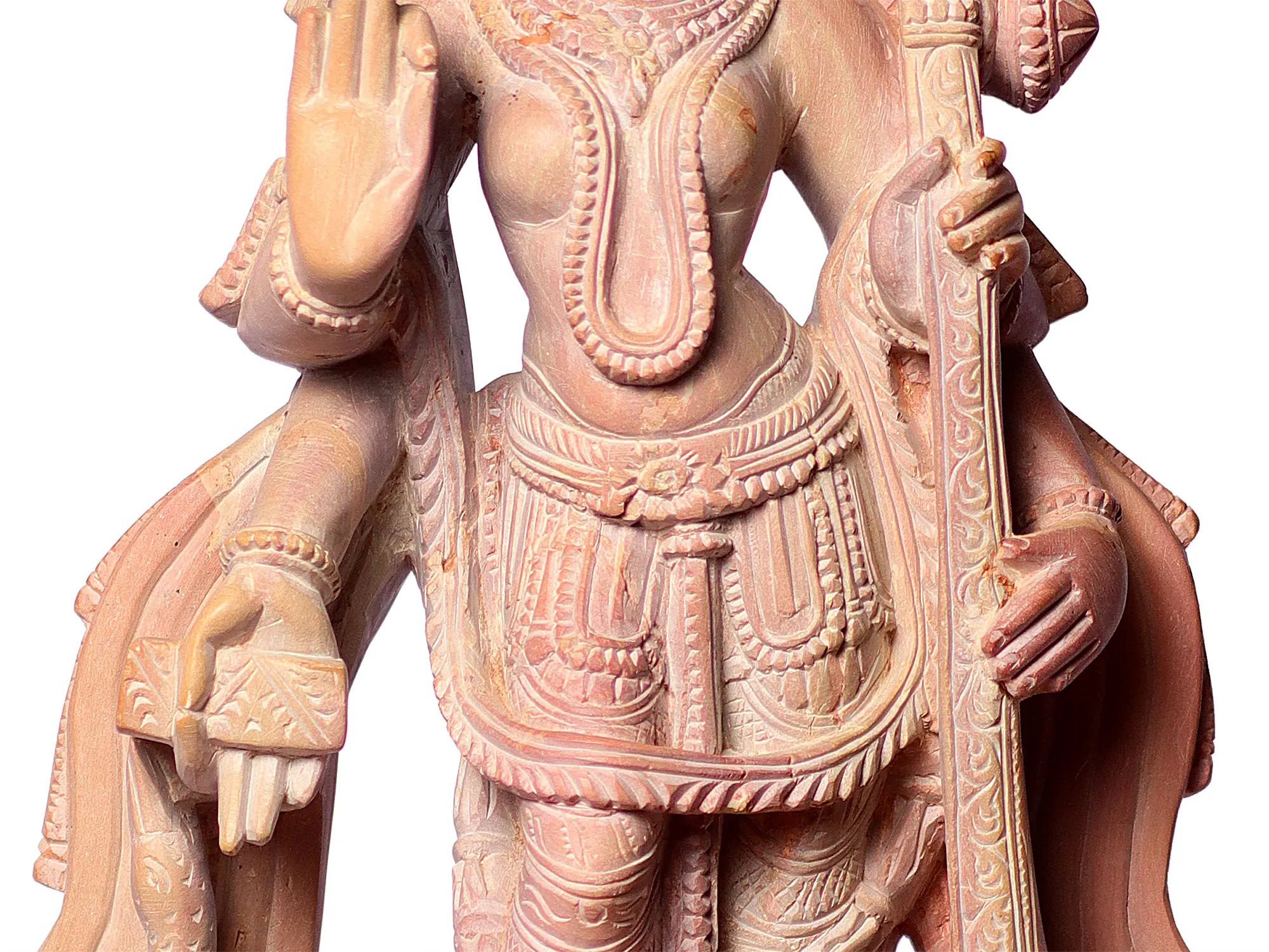8" Goddess Saraswati Holding Veena | Red Stone Statue | Hand Carved