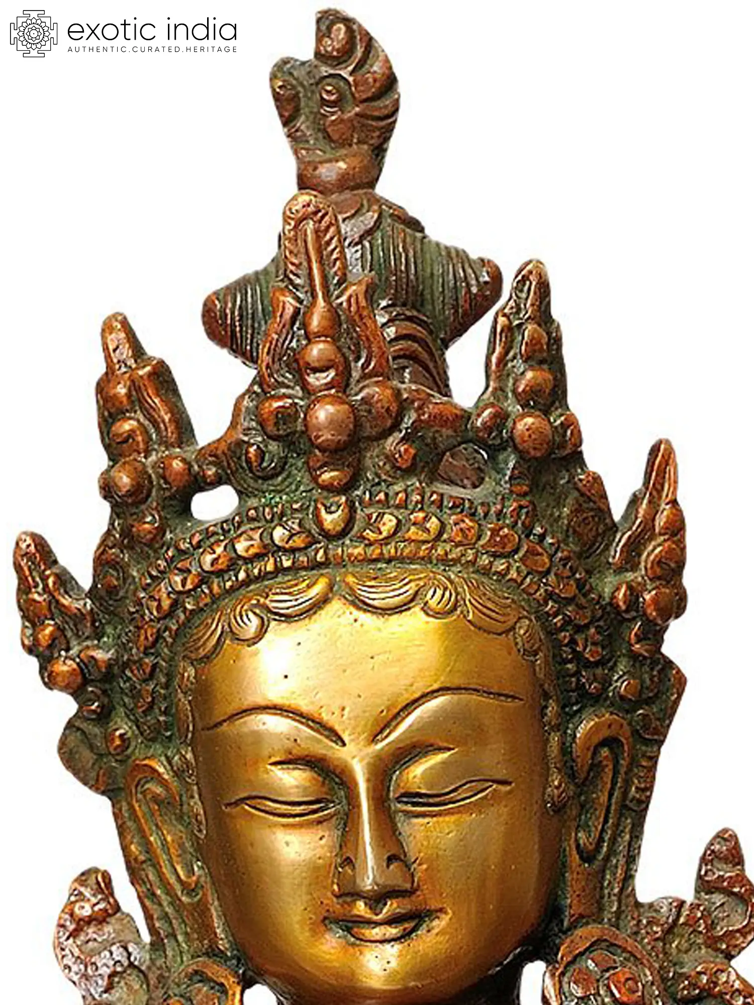 Embrace the serenity of Tibetan Buddhist philosophy with this handmade brass statue of Green Tara. Seated gracefully on a lotus, she embodies compassion and protection. In Tibetan Buddhism, Green Tara is revered as a source of boundless love and a refuge from suffering. This exquisite piece, handcrafted in India, is a symbol of enlightenment and a reminder of the path to inner peace. Place it in your sacred space to inspire a sense of grace and compassion in your daily life.