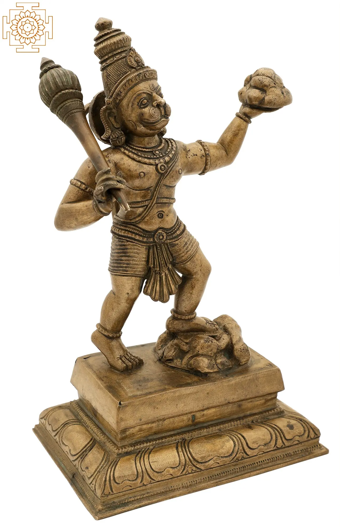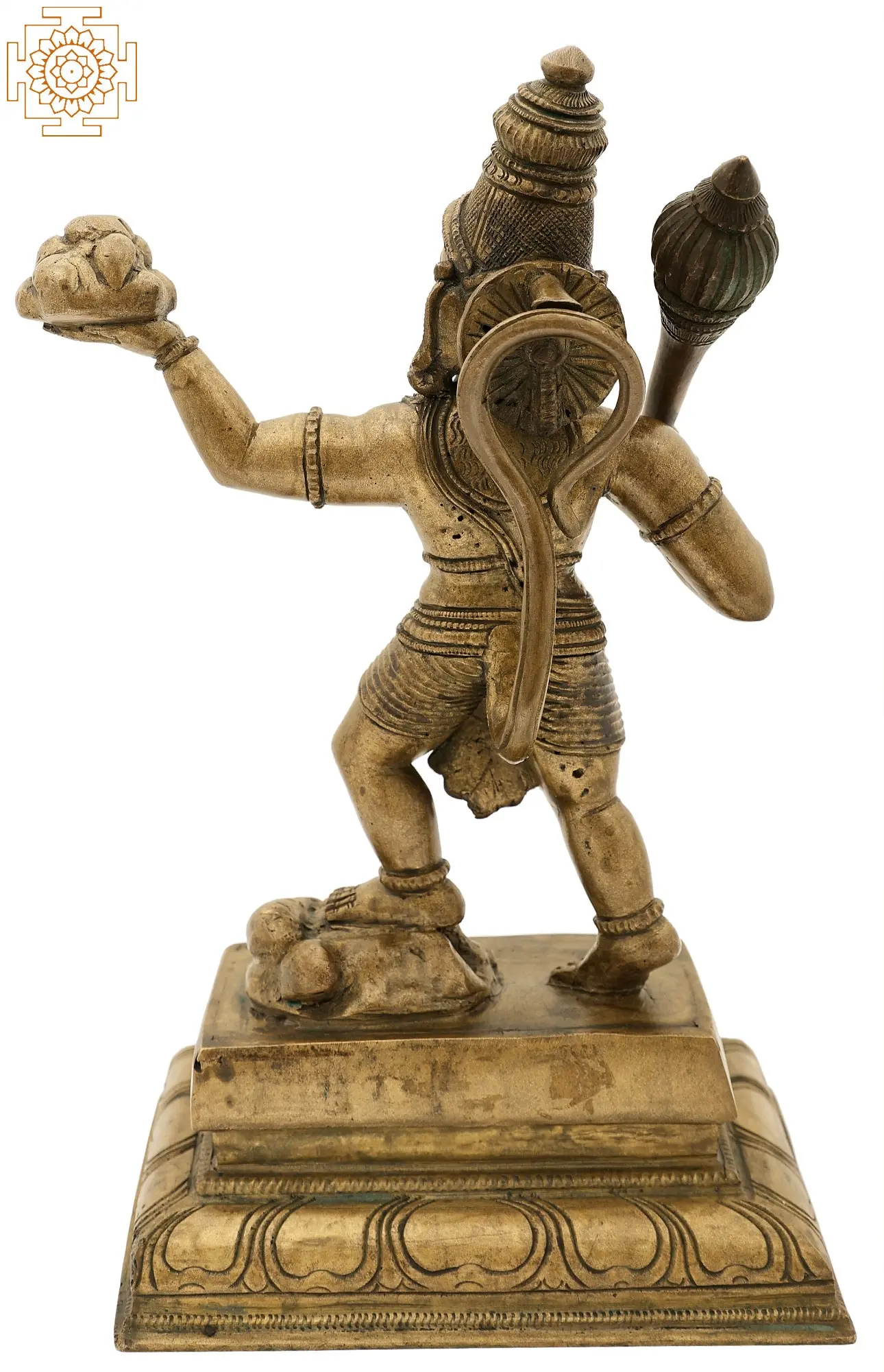6" Lord Hanuman Holding Mountain of Sanjeevani Herbs | Brass Statue