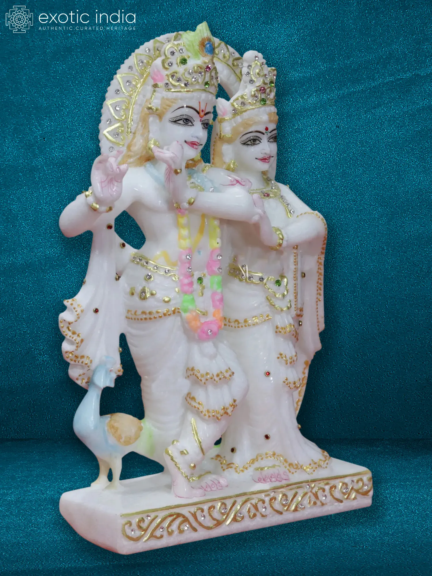 15" Lord Krishna With Radha Rani | Super White Makrana Marble Statue