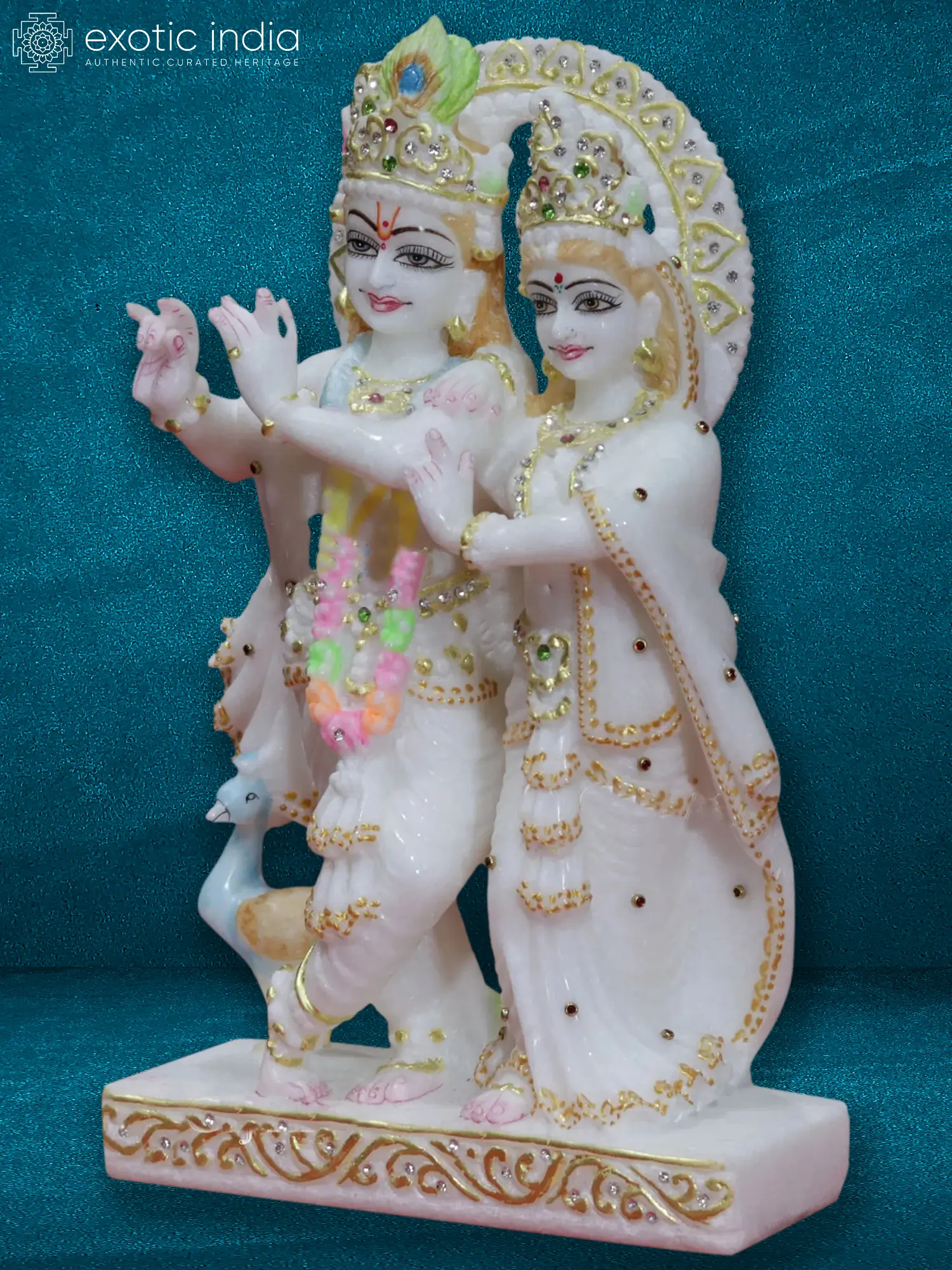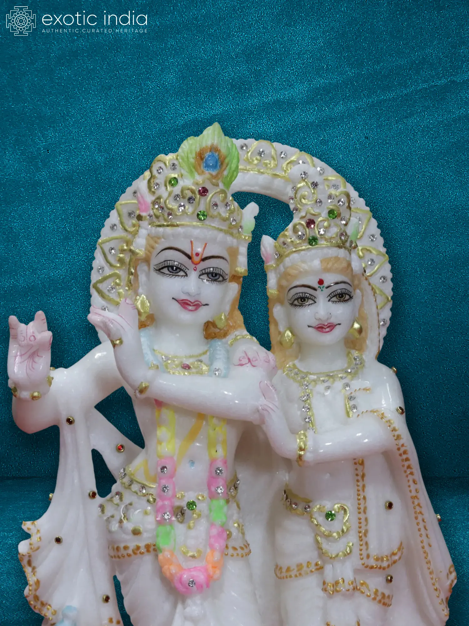 24" Beautiful Statue Of Radha-Krishna | White Makrana Marble Statue