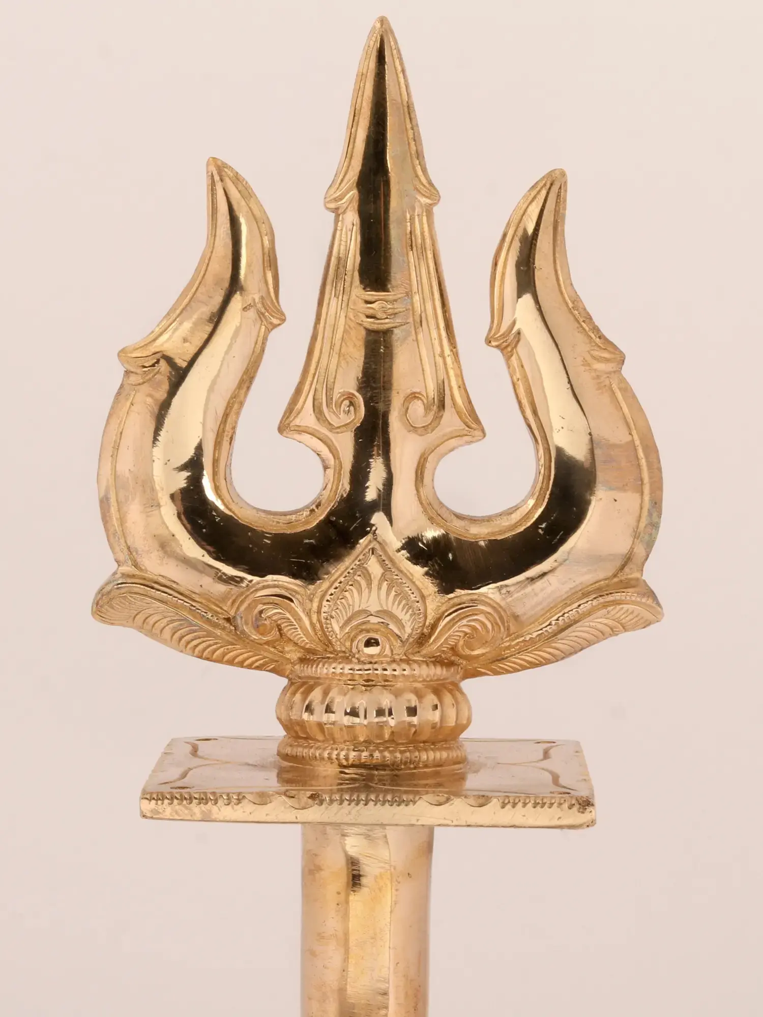 A foot tall, of a pillar-like structure - this Trishula stands on a quadri-layered pedestal. Although possessed by many deities in the Hindu pantheon, this particular is a Shiva Trishula marked to distinction by its Tripunda. Shiva, who is Ananta - free from the cycle of birth and death is said to have his Trishula - symbolizing immorality. The three prongs of the Trishula are often also seen as the three aspects of what life is about - Creation, Sustenance, and Destruction. Shiva’s omnipresence finds its way through the sight of his seraphic Trishula.