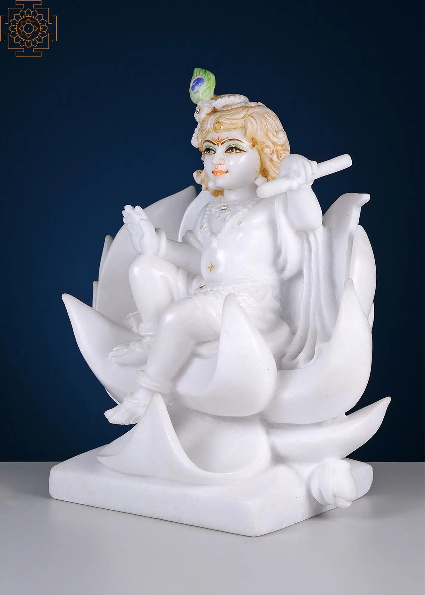 12" Krishna Sitting on Lotus | Handmade | White Marble Krishna | Lord Krishana Idol | Kanha Murty