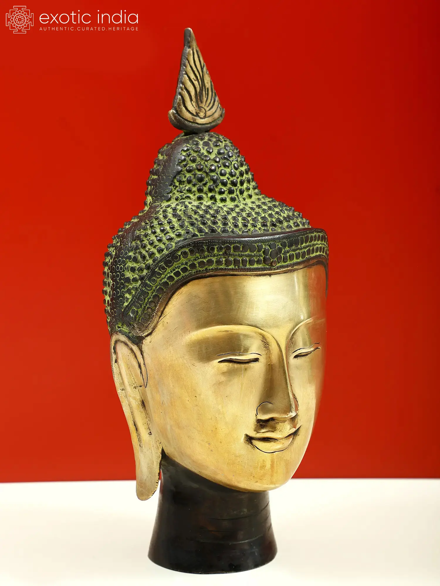12" Lord Buddha Head In Brass