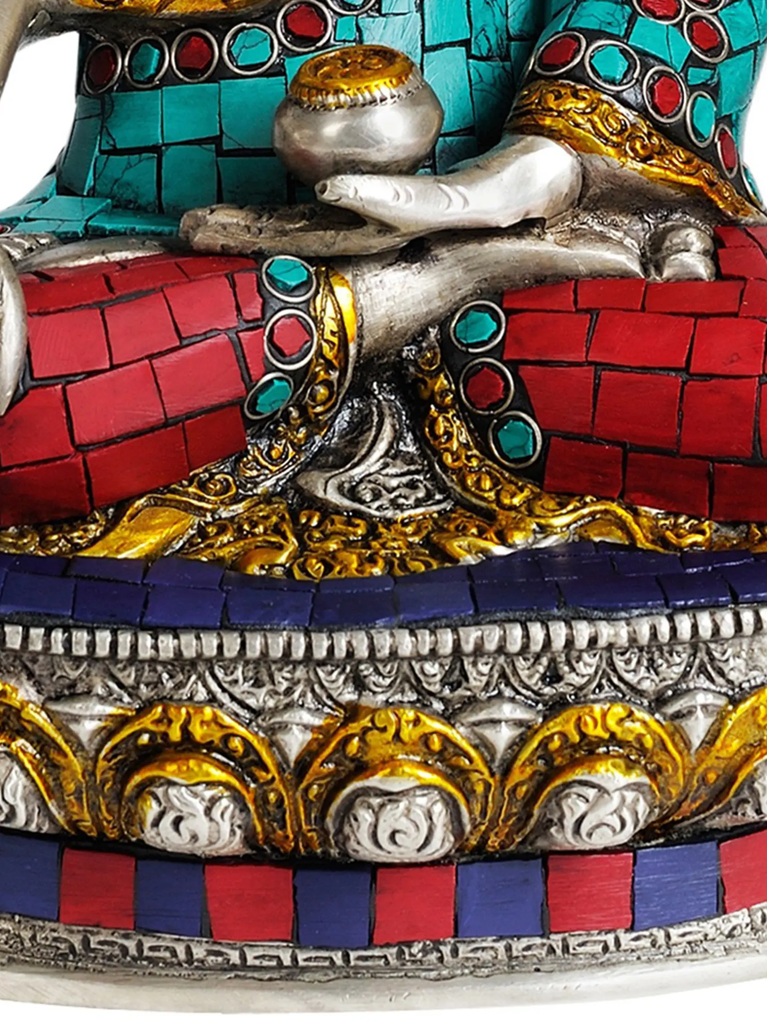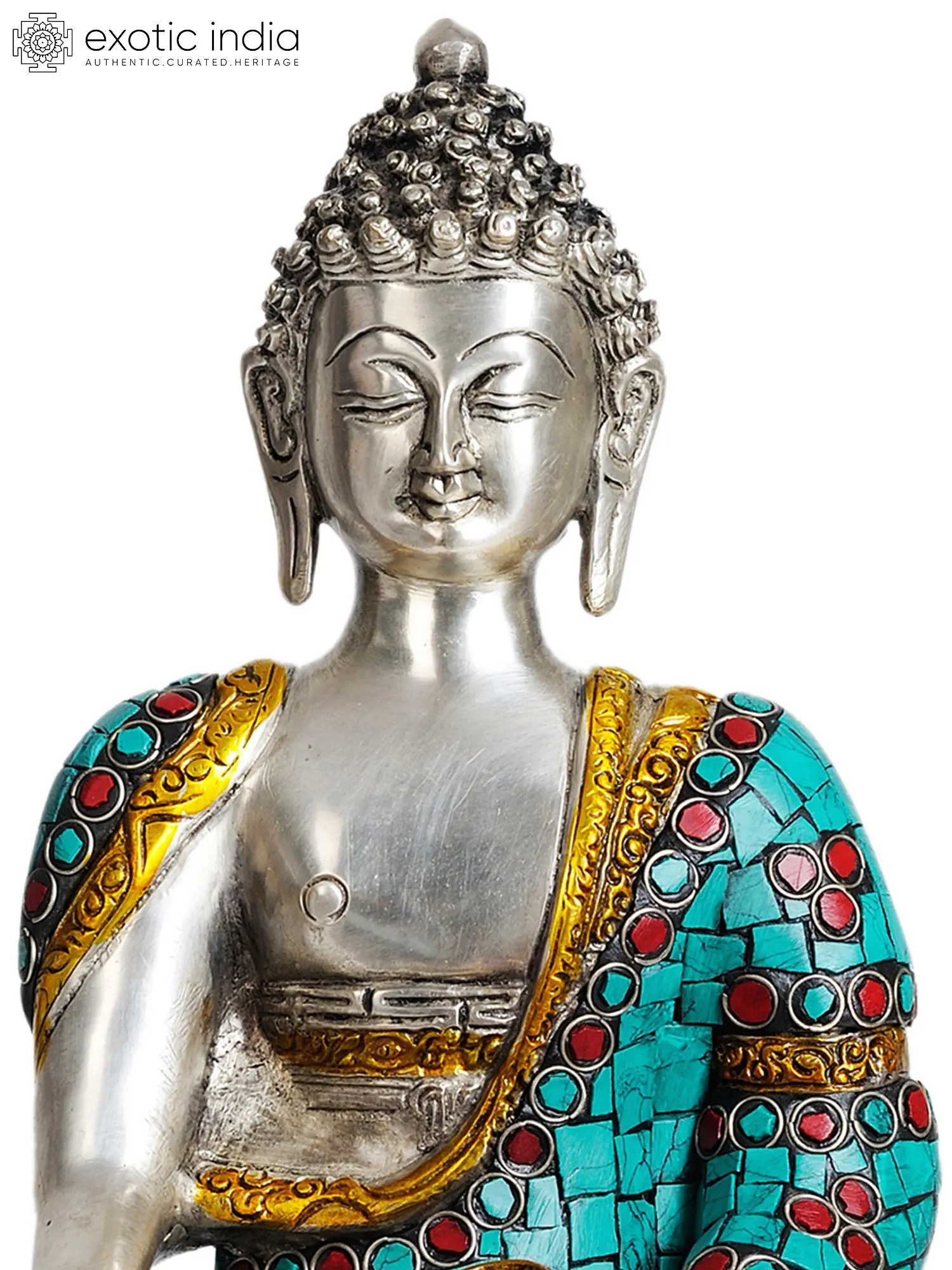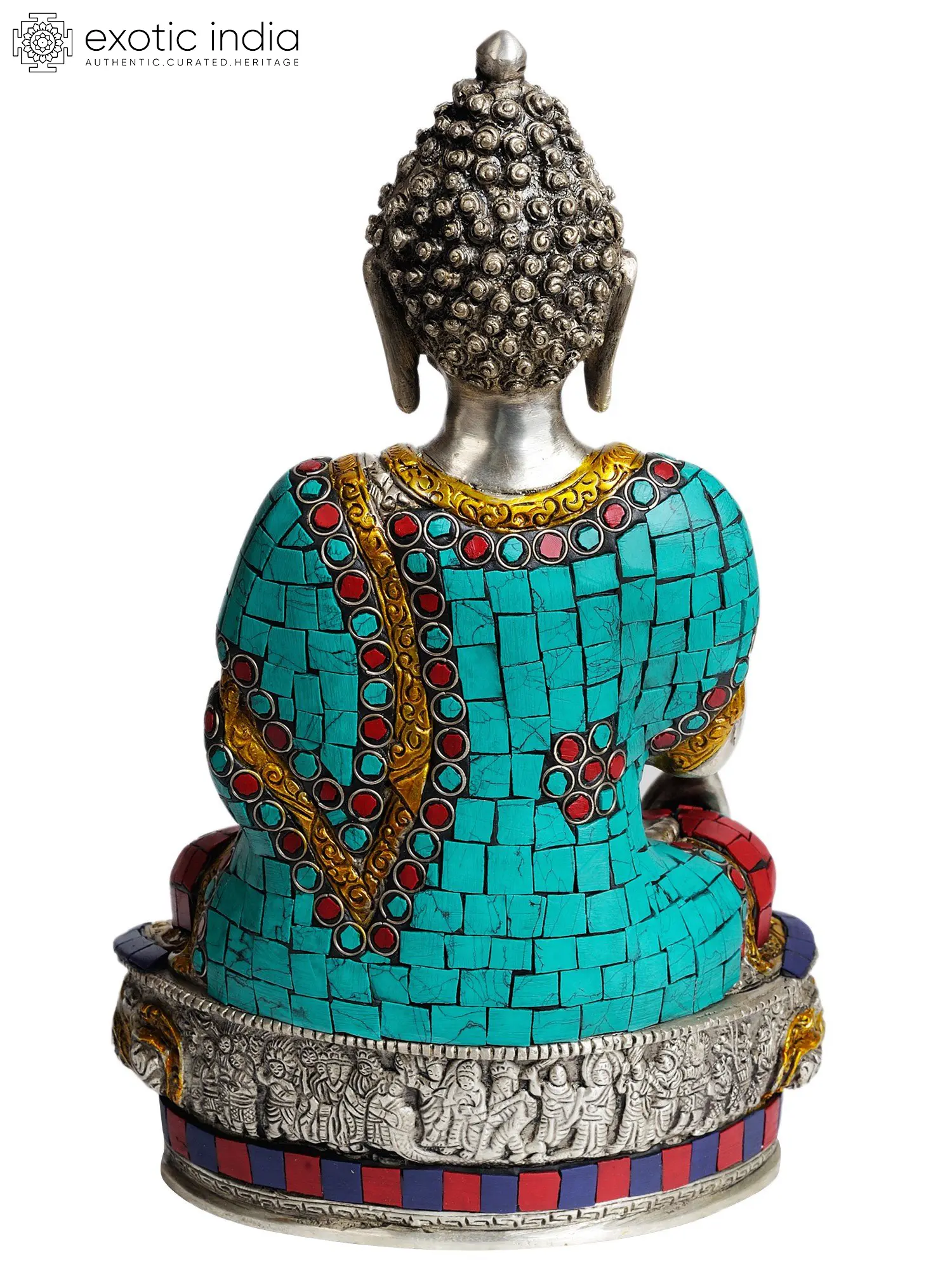 12" Lord Buddha in Bhumisparsha Mudra (with Inlay Work) In Brass