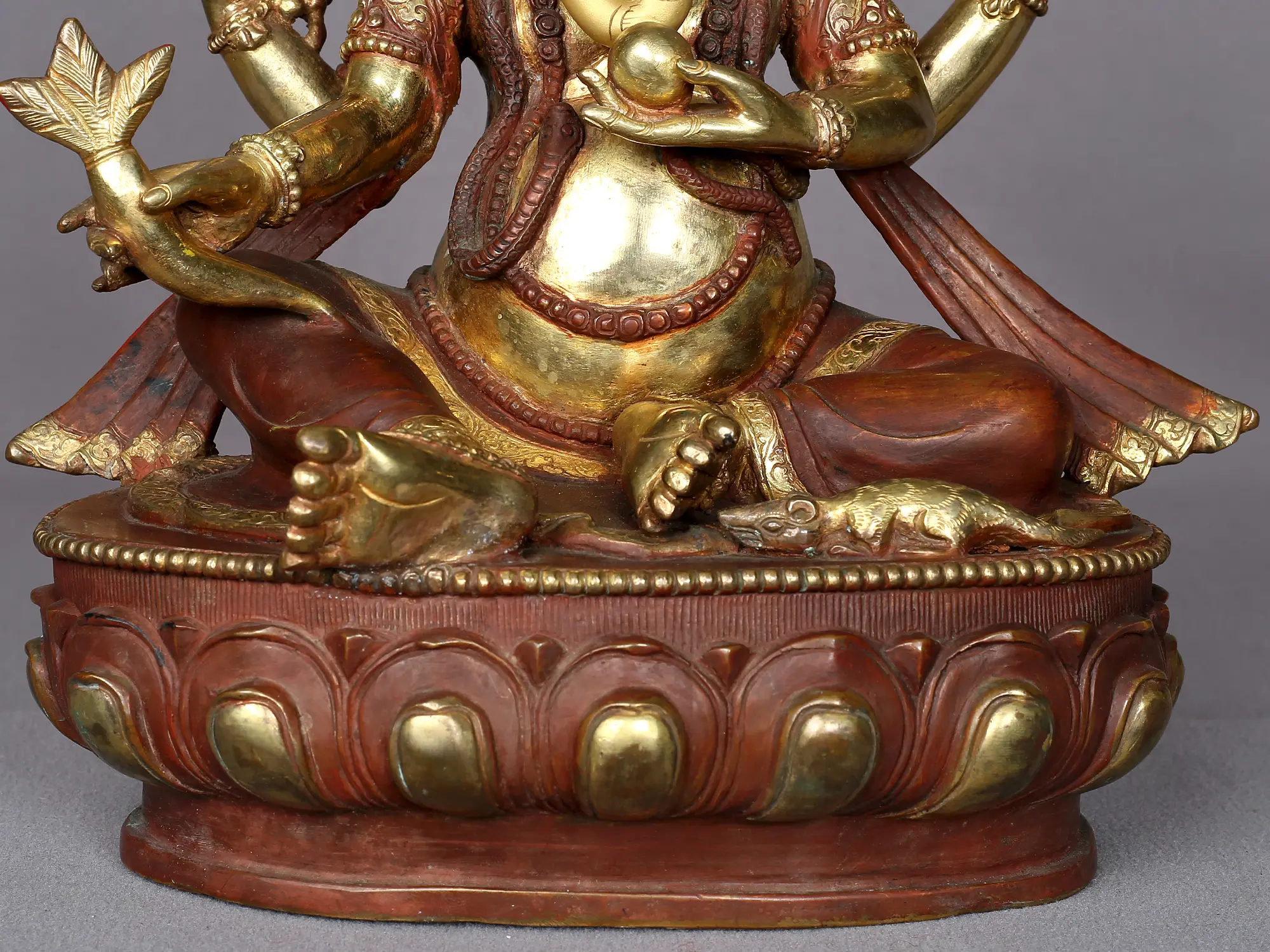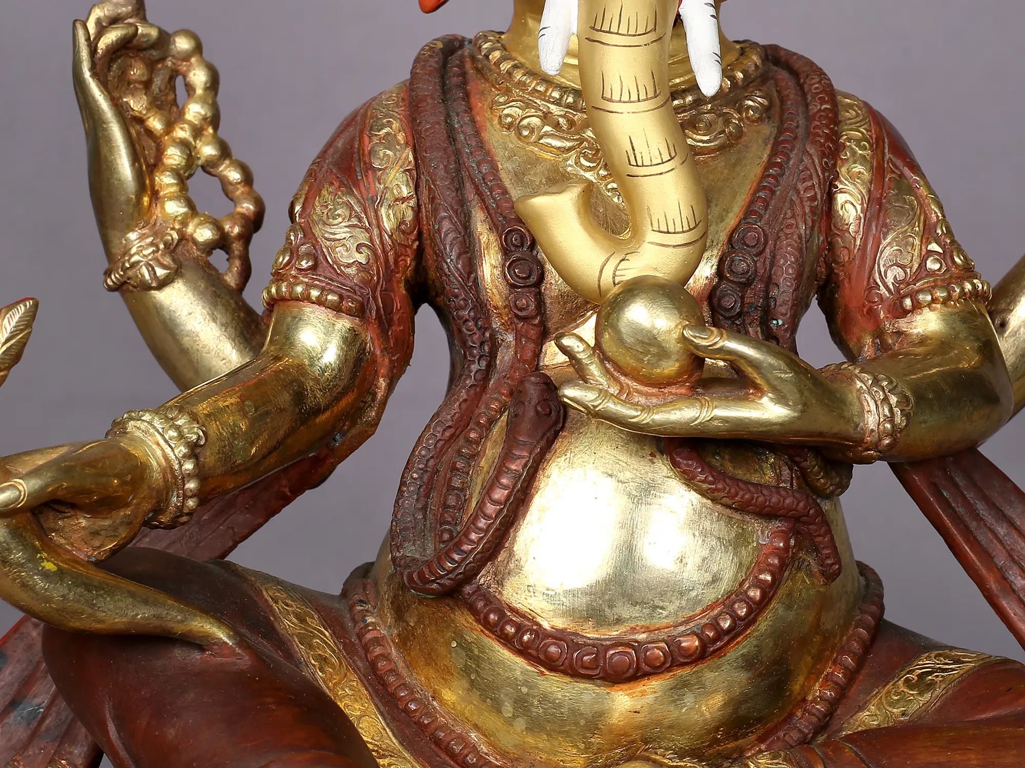 Lord Ganesha Copper Statue Gilded with 14K Gold