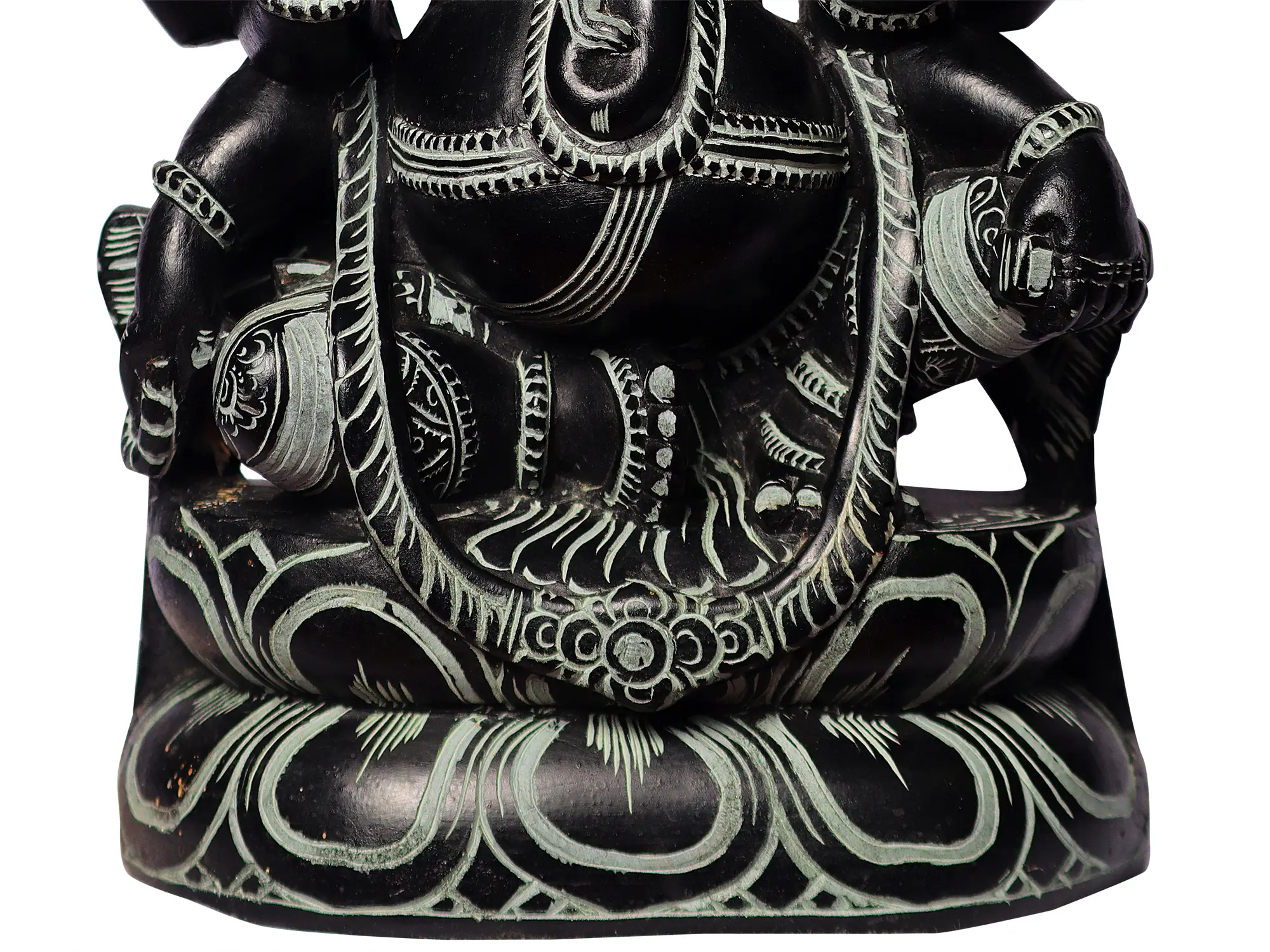 Invite the divine presence of Lord Ganesha into your home with this exquisite black granite sculpture. Crafted with meticulous detail, this 12-inch masterpiece embodies the very essence of the Remover of Obstacles and the Patron of Arts and Sciences. The deep, rich hue of the granite lends an aura of gravitas and timelessness to the depiction, making it a striking focal point in any sacred space or personal sanctuary.