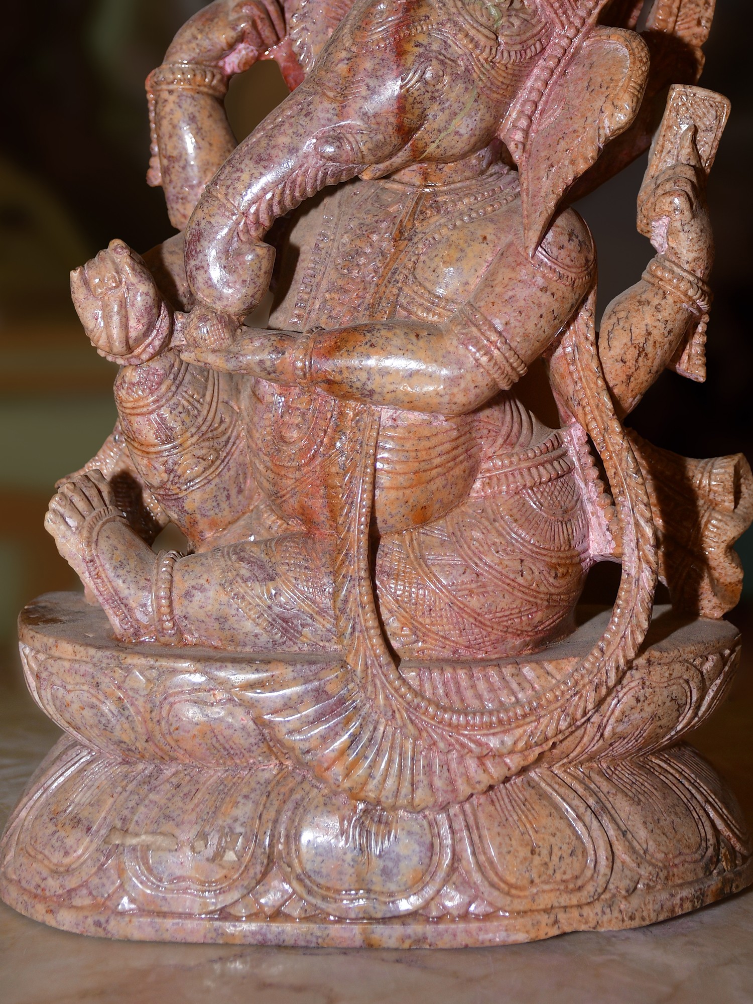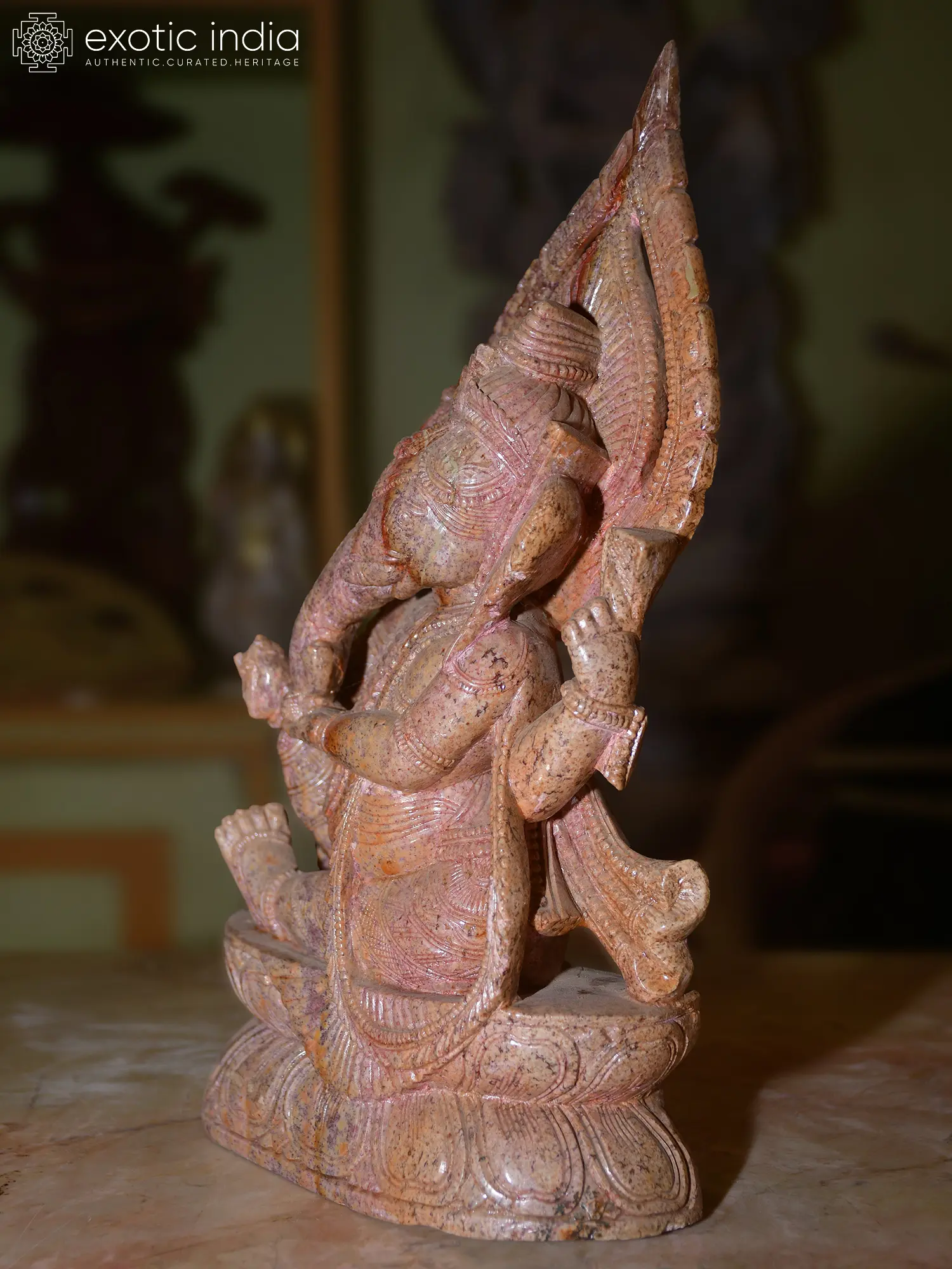 33" Goddess Saraswati Holding Veena with Peacock | Orissa Stone Statue | Indian Handmade Art