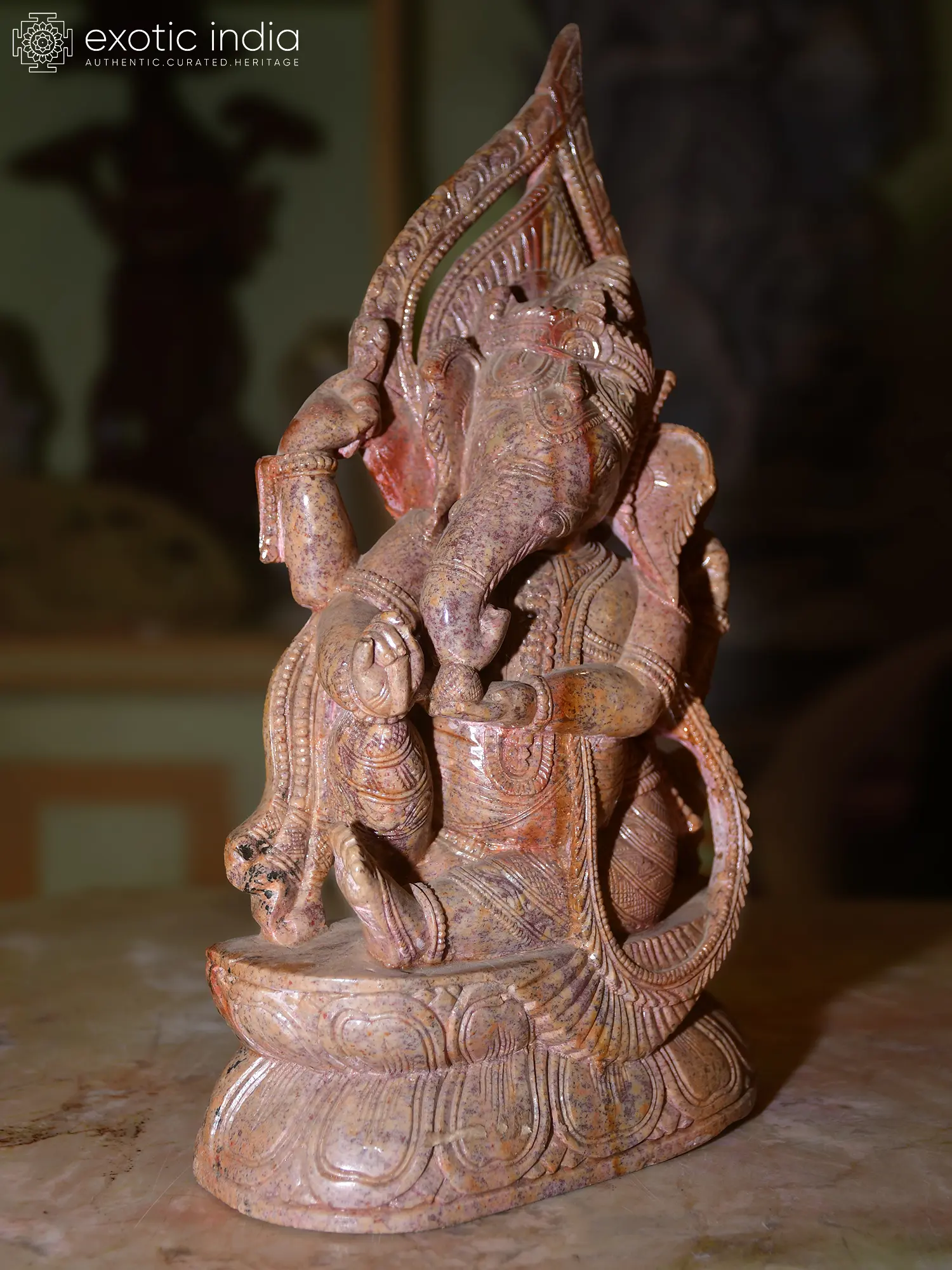 9" Brass Lord Ganesha Statue Seated on Throne | Handmade | Made in India