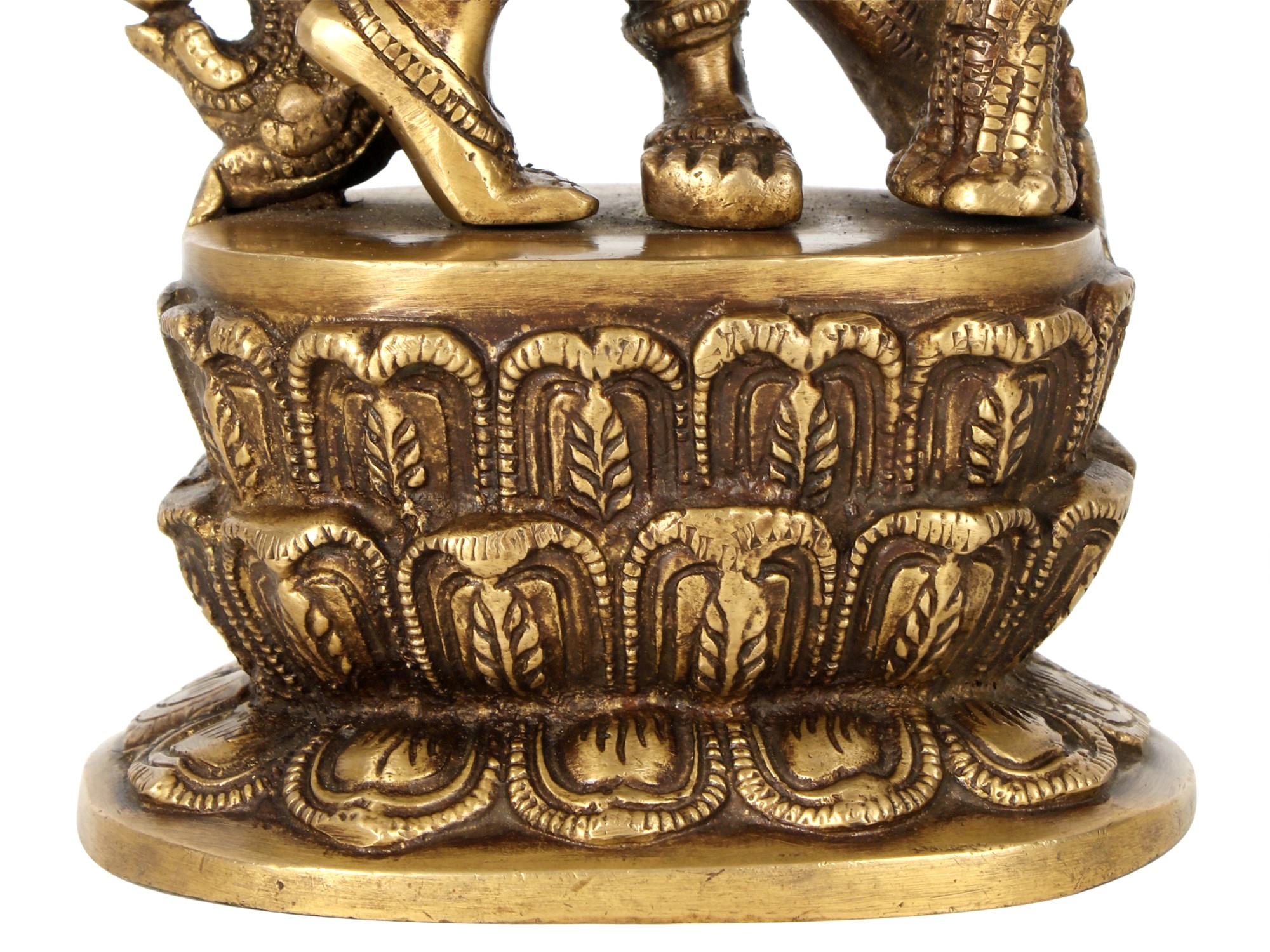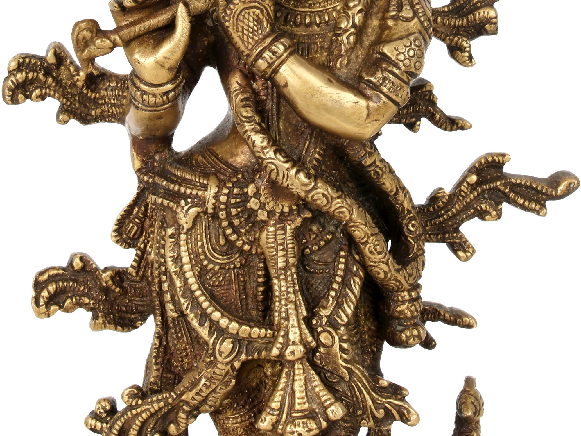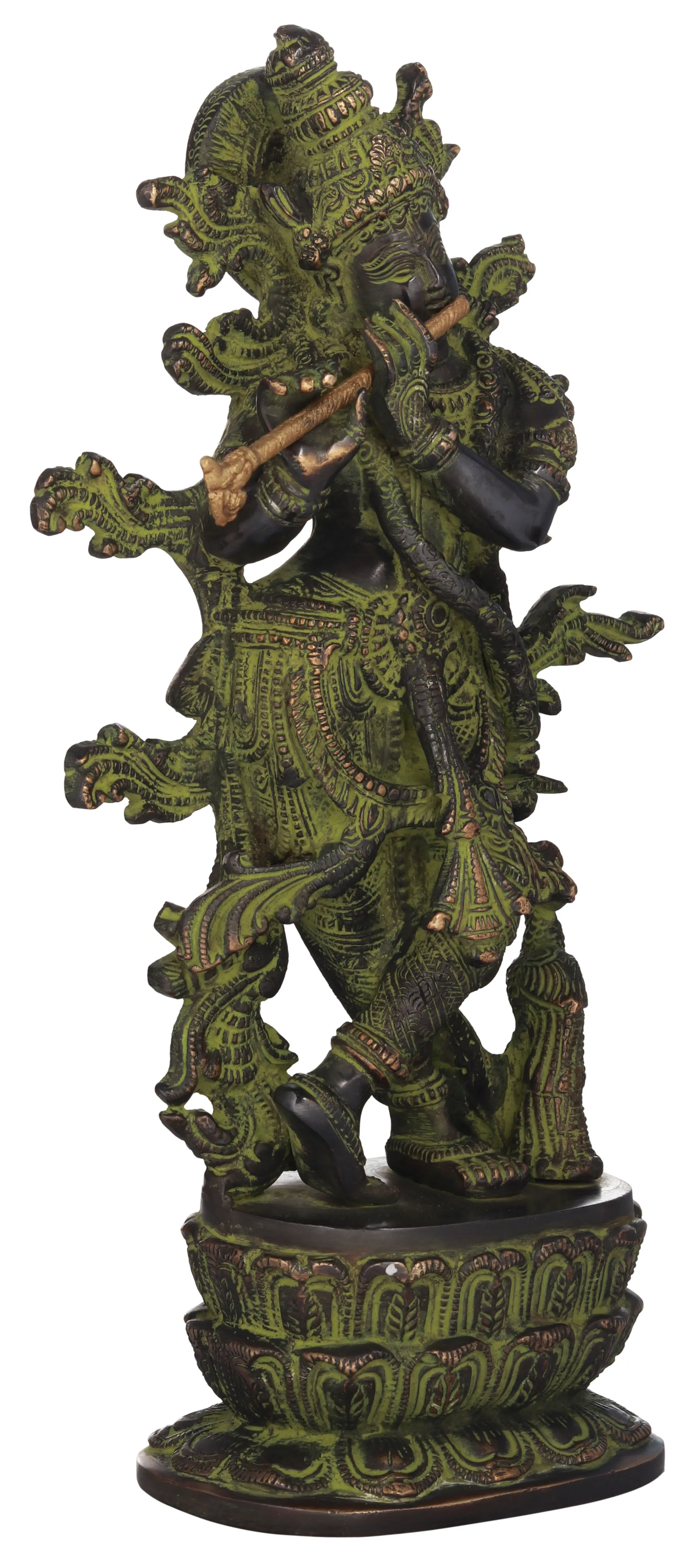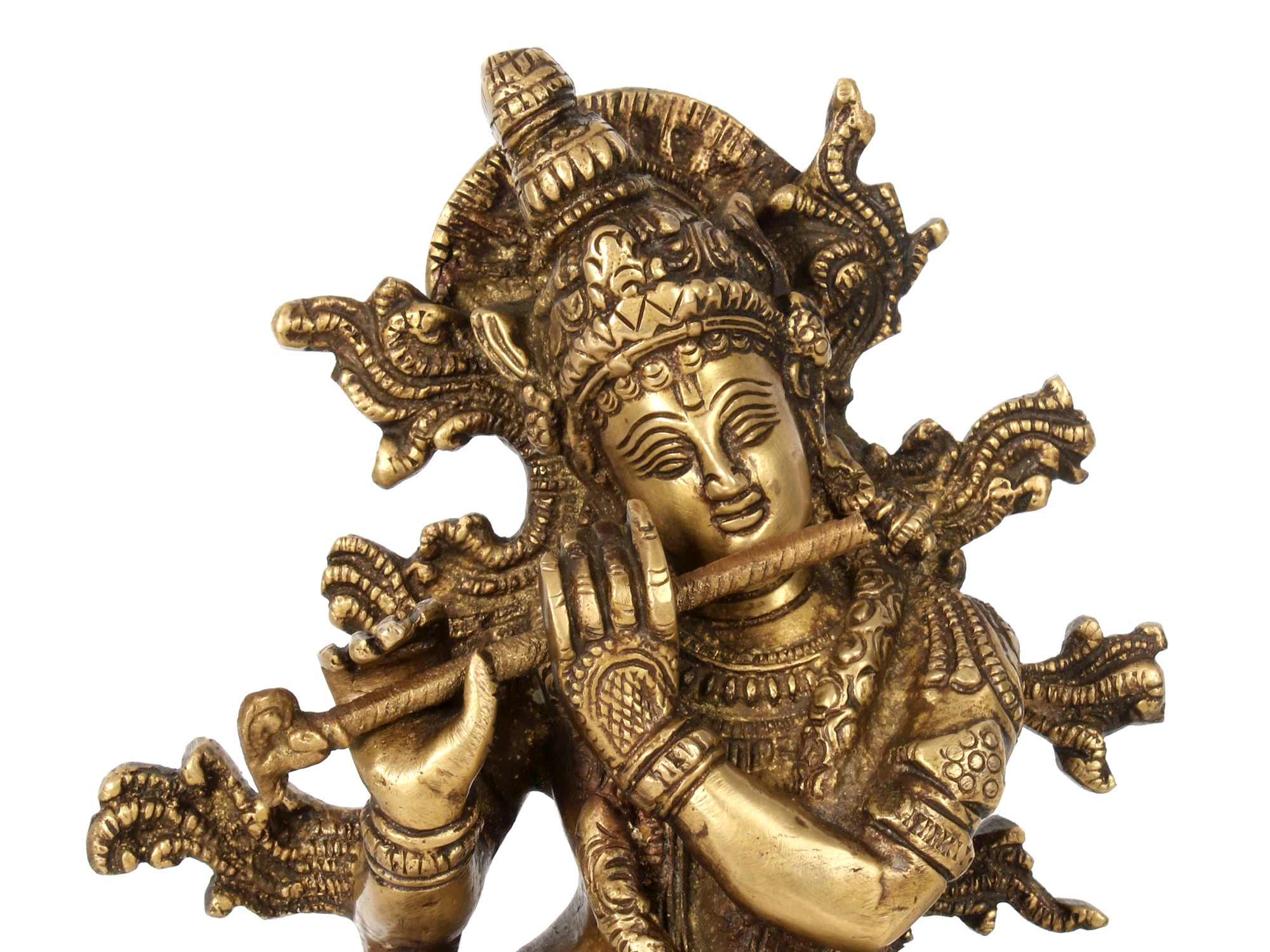 This sculpture is not merely an artistic creation but a spiritual experience, reminding us of the teachings and philosophy associated with Lord Krishna. This brass sculpture is more than just a piece of art; it's a window to a spiritual realm, a reflection of Indian philosophy, and an embodiment of the divine. Place it in your home to experience the eternal charm and grace of Lord Krishna, and let his presence bless your living space.