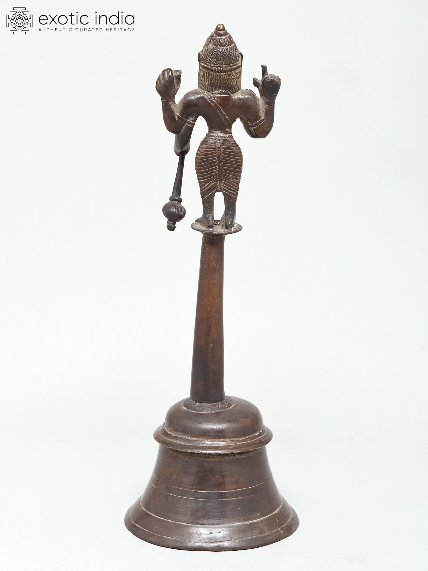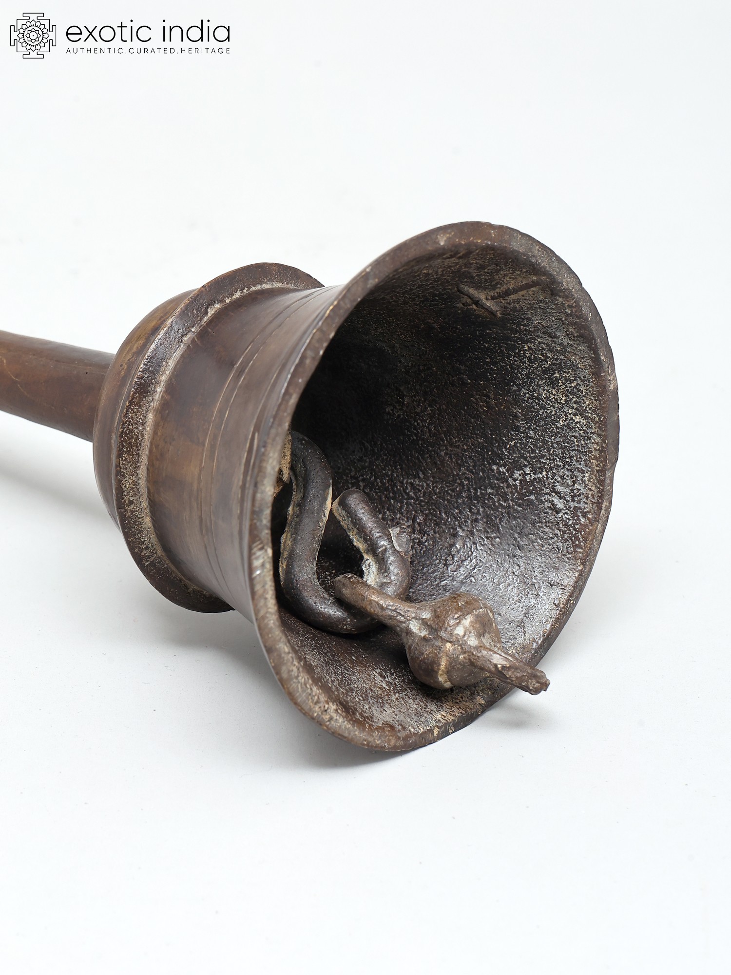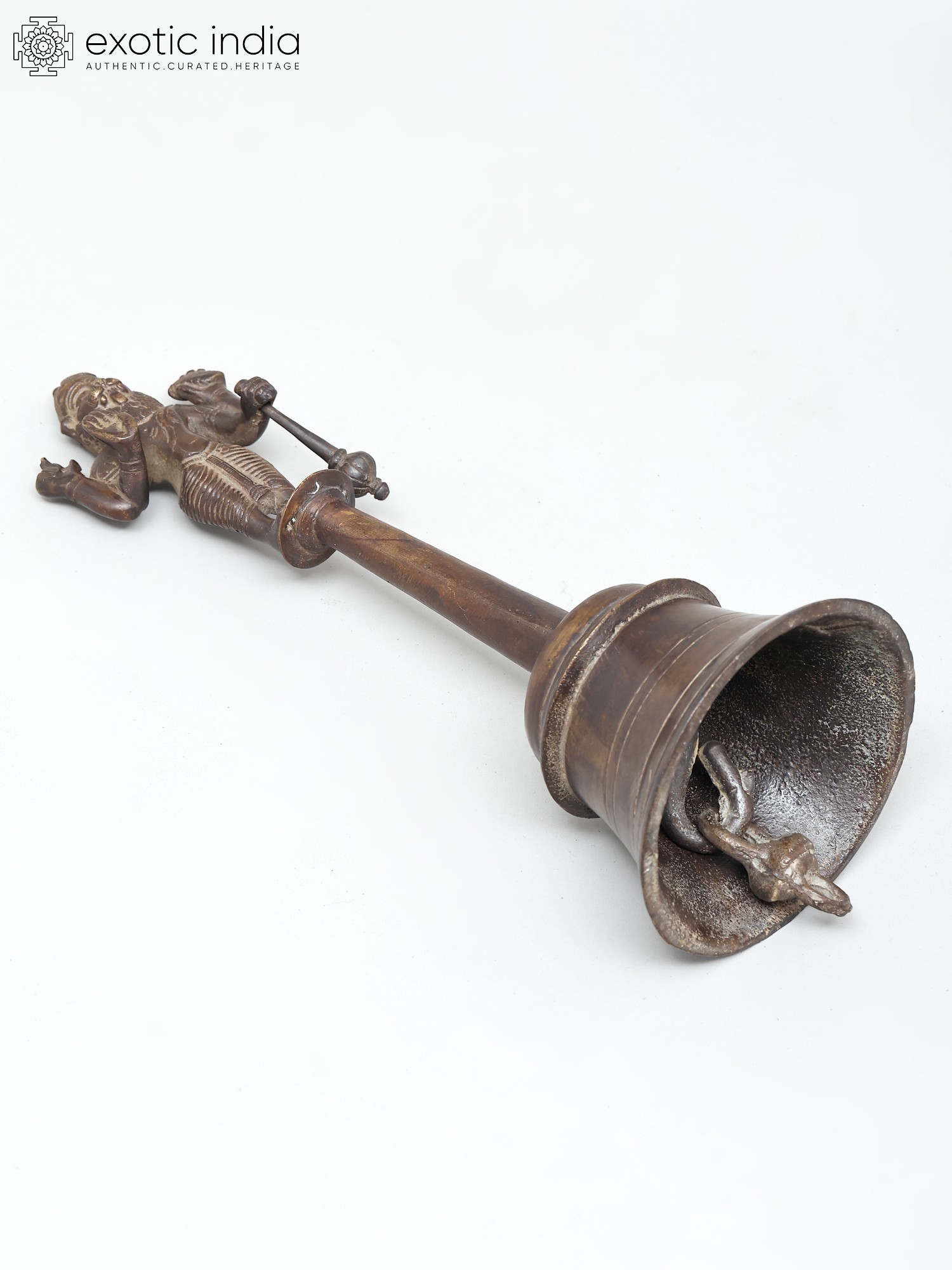 10" Large Size Nandi Hand-Held Bell in Brass | Handmade | Made in India
