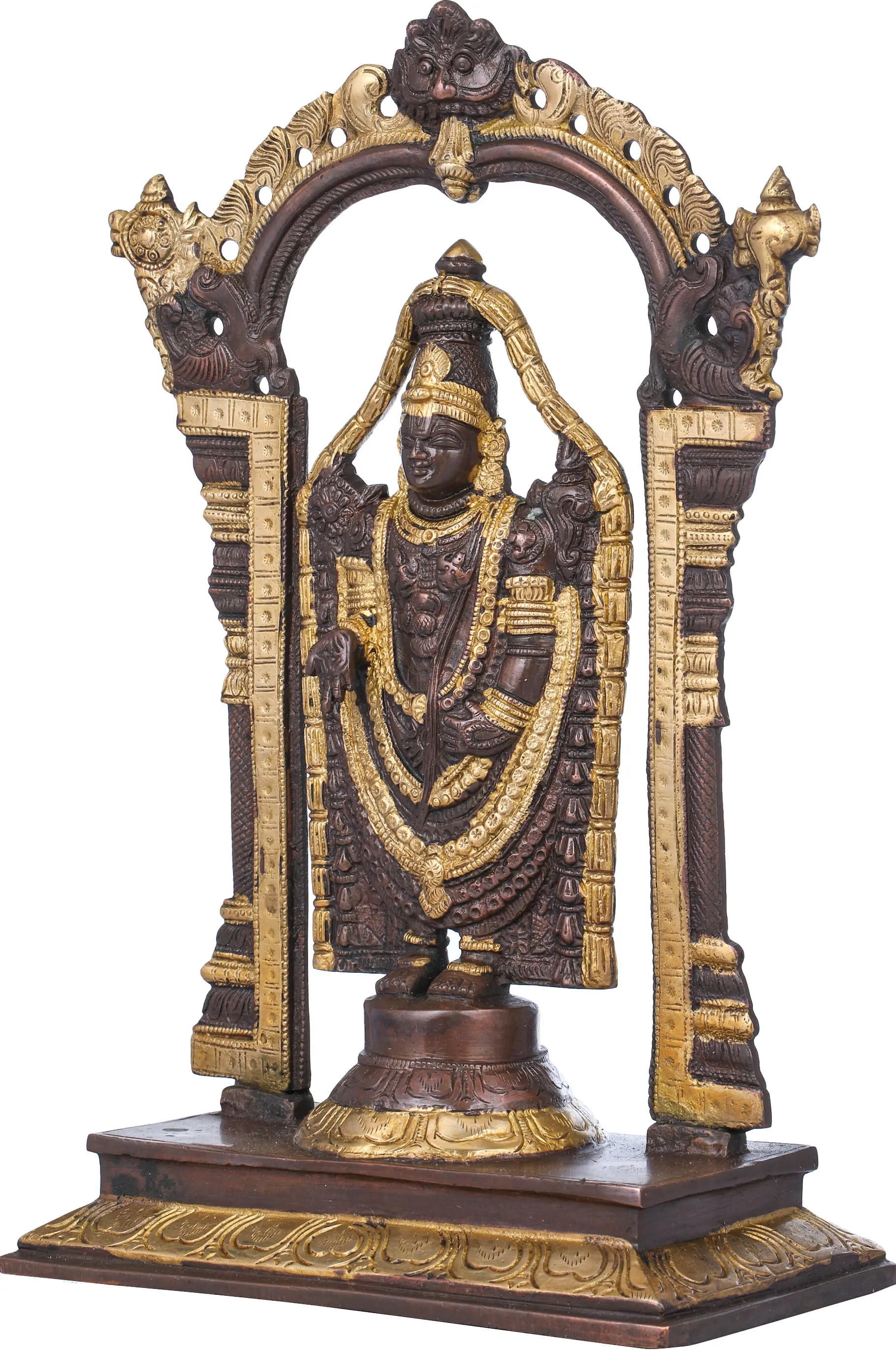 Immerse your sacred space in divine grace with this exquisite brass idol of Lord Venkateshwara, also revered as Balaji. Standing tall at 12 inches, this handcrafted masterpiece captures the benevolent form of the deity, making it a focal point of spiritual devotion and artistic admiration. Crafted with meticulous detail in India, this sculpture embodies centuries of tradition and craftsmanship. Lord Venkateshwara is a form of the Hindu deity Vishnu, and his most famous abode is the Tirumala Venkateswara Temple in Tirupati, Andhra Pradesh, one of the most visited pilgrimage sites in the world. Devotees believe that a darshan (seeing) of Balaji at Tirupati, or his representation, bestows blessings of prosperity, good health, and the fulfillment of sincere wishes.