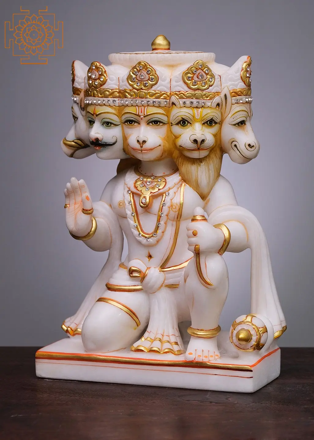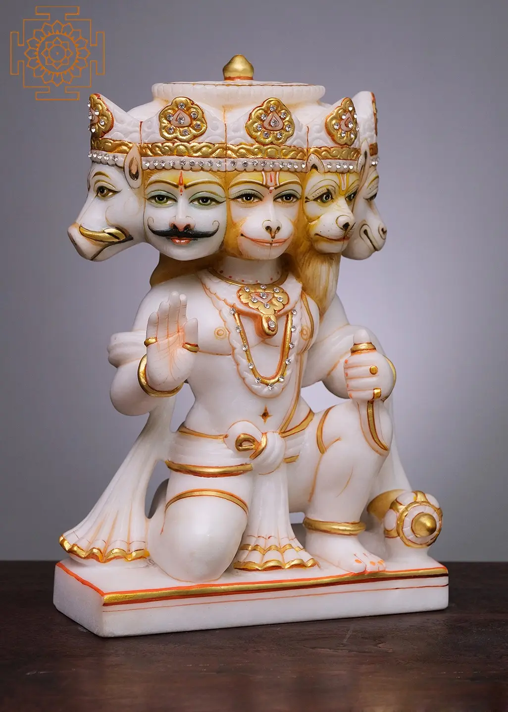 12" Panchamukhi Hanuman Statue for Home | White Marble Panchmukhi Hanuman Statue | Panchmukhi Statue