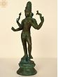 This lord of animals and the masculine counterpart of Shakti stands in a distinct posture on a naturally carved double lotus pedestal with the Left leg slightly bent and body curvature in an elegant tilt supported by stick straight right leg.