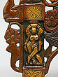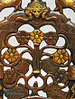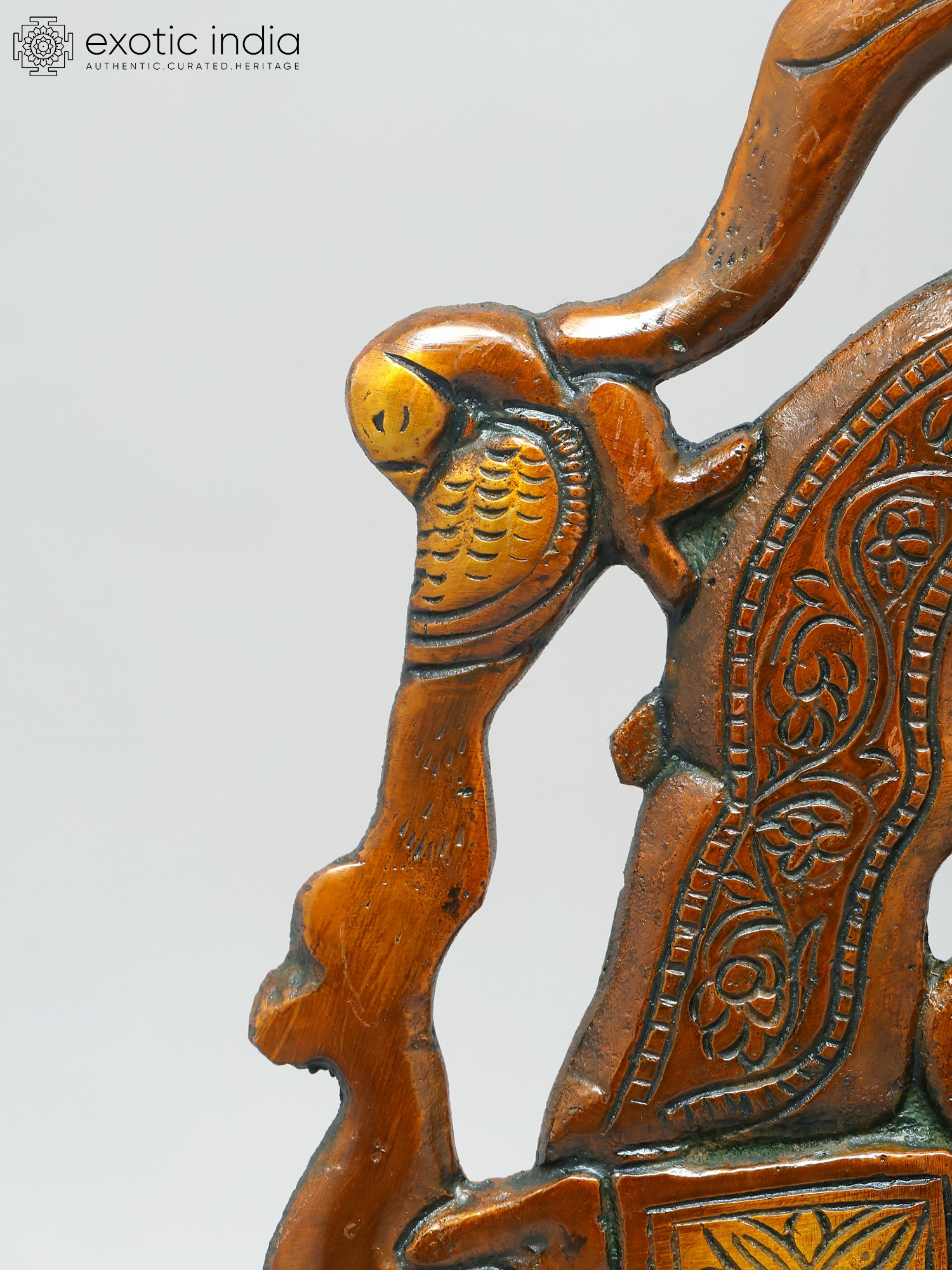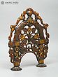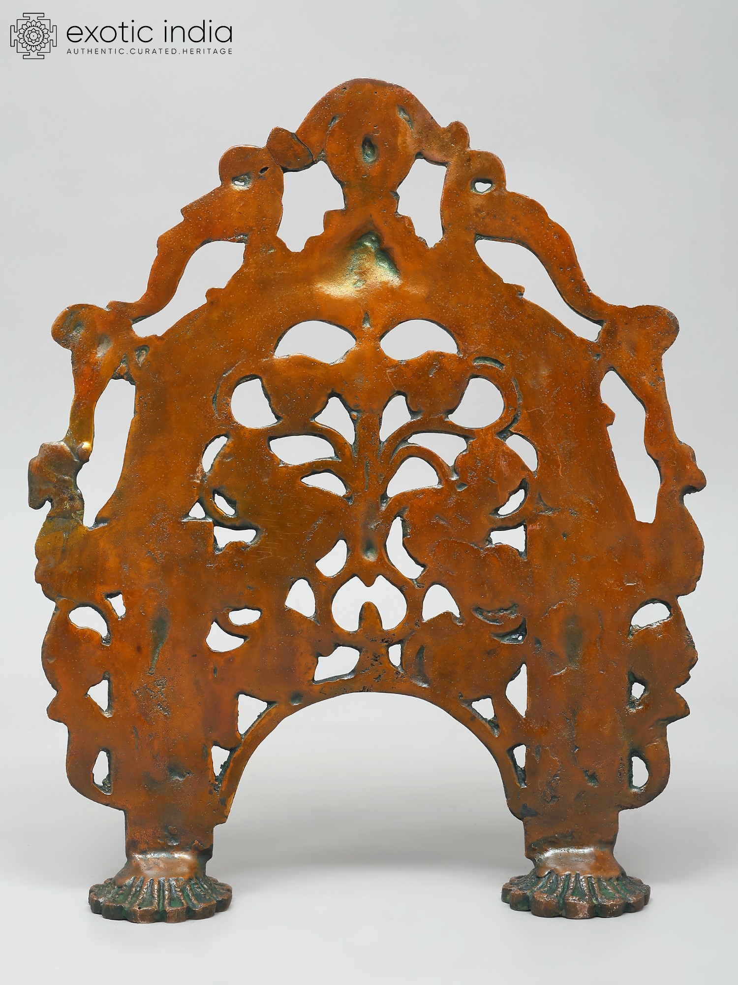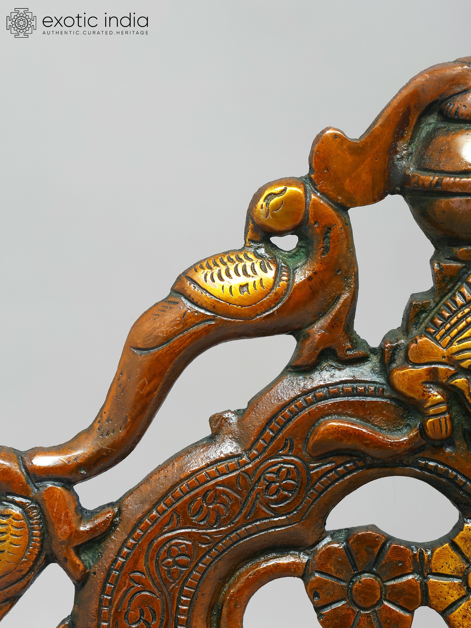 Adorning the arch are depictions of peacocks, revered in Indian culture as symbols of beauty, royalty, and immortality. The peacock’s iridescent feathers, which display an array of vibrant colors, have long been associated with prosperity and good fortune. Their presence on this Prabhavali evokes a sense of grace and elegance. At the apex of the arch resides the fierce face of the Kirtimukha, a mythological creature whose name translates to "Face of Glory." Kirtimukha is a symbol of auspiciousness and apotropaic power, warding off negative energies and safeguarding the space from evil influences. Legend has it that Kirtimukha was born from the wrath of Shiva, the destroyer of evil, and ultimately consumed himself, demonstrating boundless hunger and dedication. His presence on the Prabhavali serves as a potent reminder of the triumph of good over evil and the protective power of the divine.