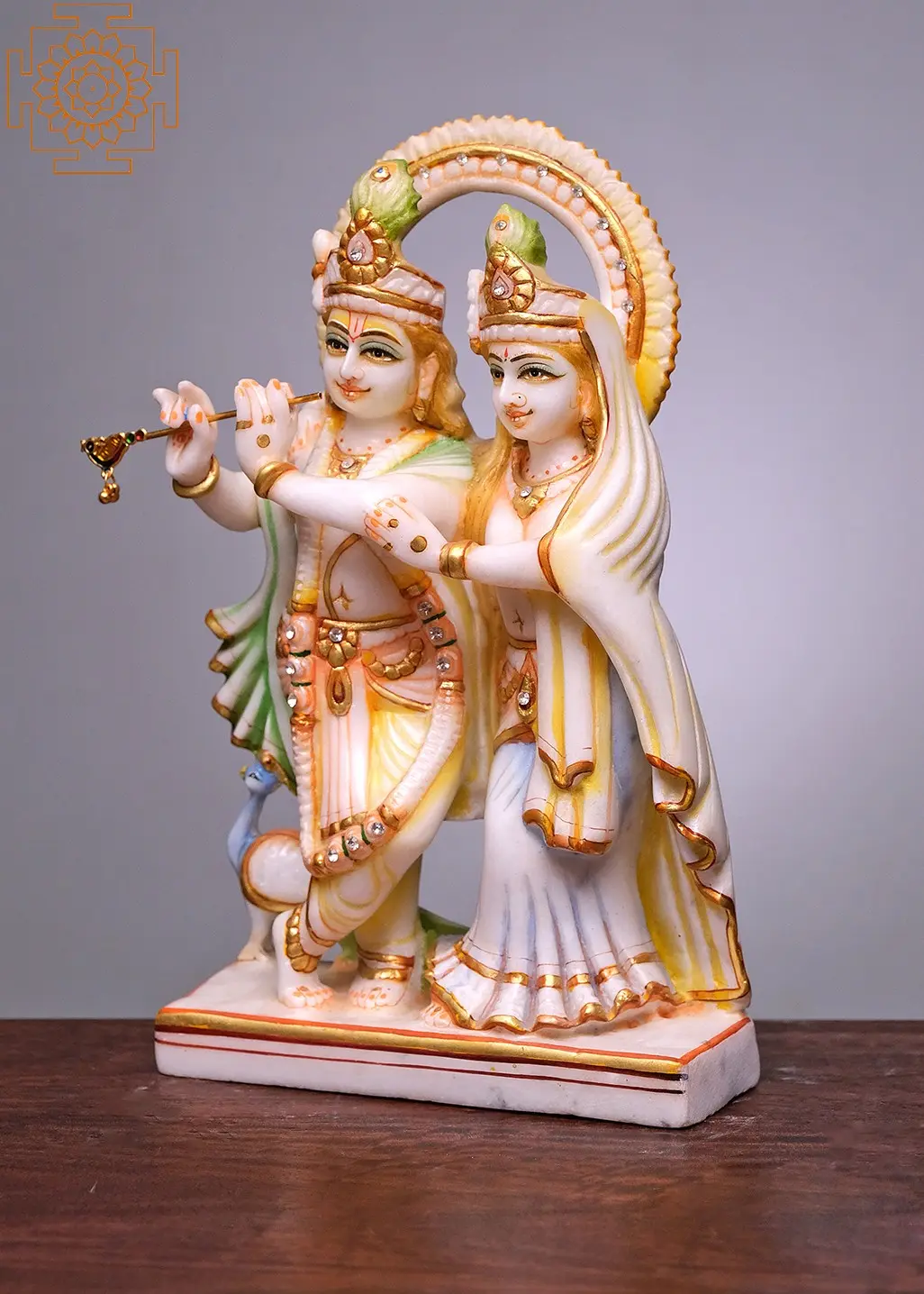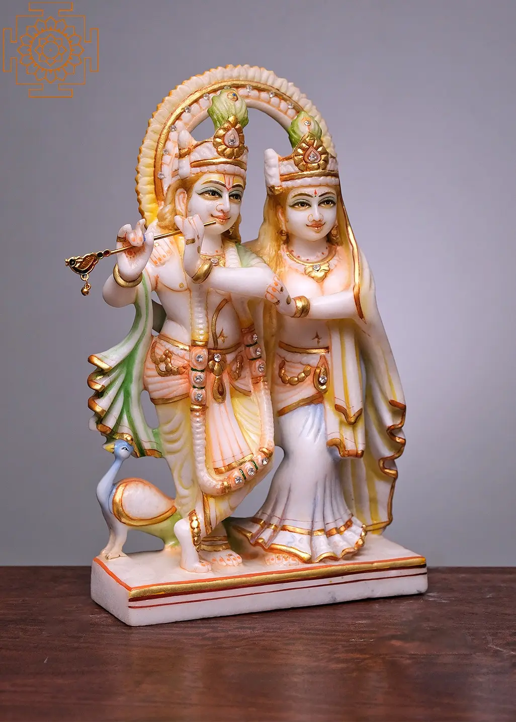 12" Radha Krishna Statue | Handmade | Radha Krishna With Peacock Statue | Marble Radha Krishna Statue | Divine Couple God | Lord Krishna | Goddess Radha
