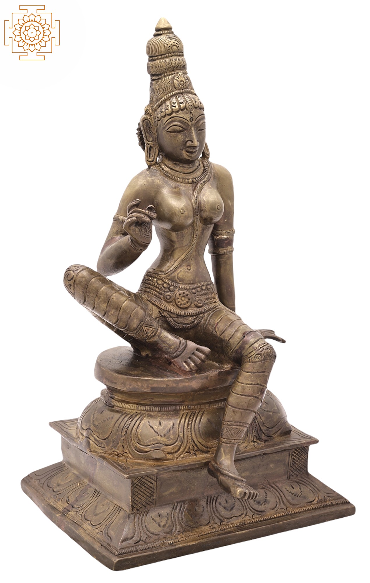 12" Seated Goddess Uma (Parvati) In Brass | Handmade | Made In India