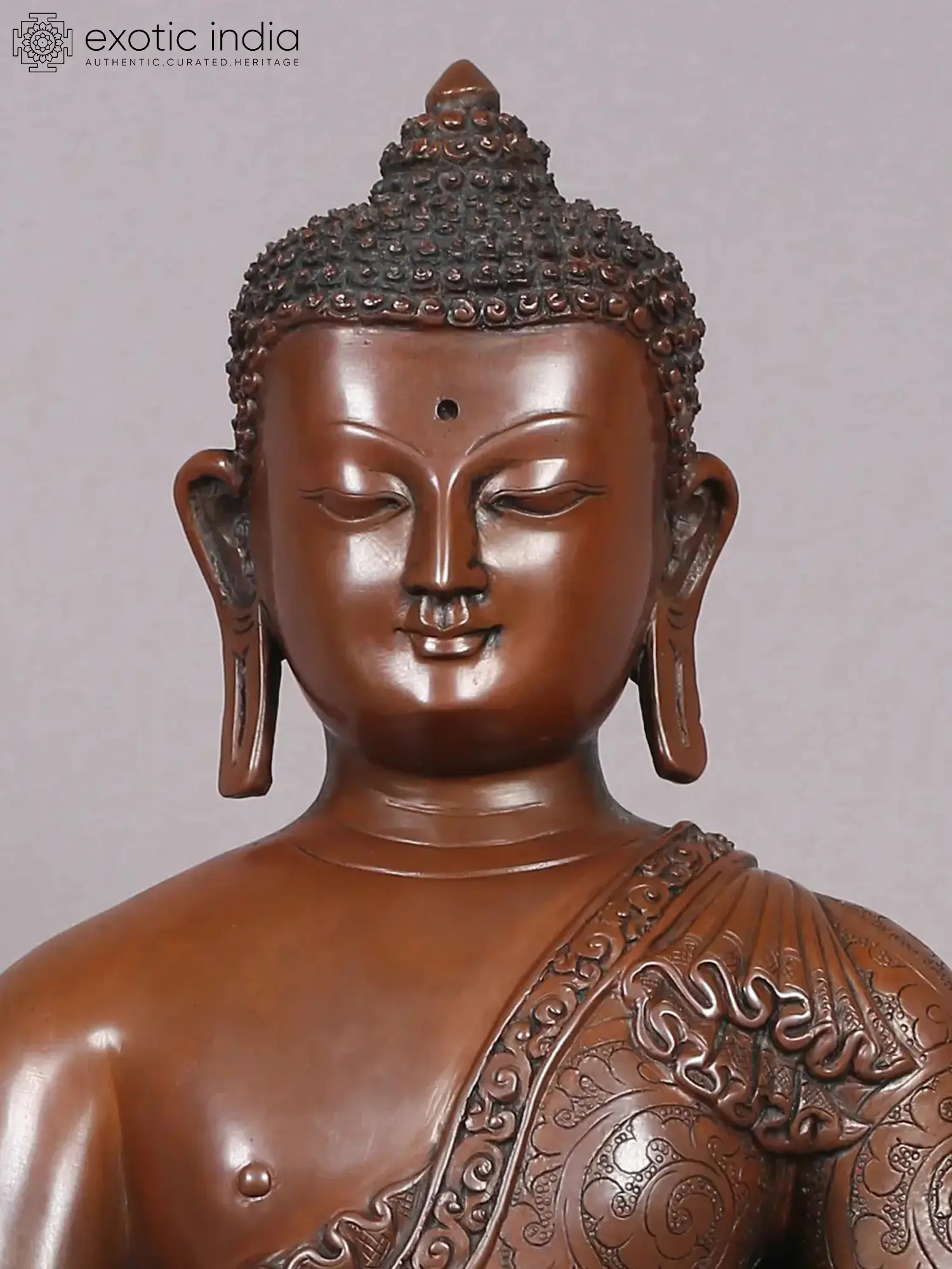 A masterpiece of spiritual artistry, the Shakyamuni Buddha sculpture stands as a testament to enlightenment's timeless wisdom. Its form exudes an aura of serene introspection, with half-closed eyes inviting observers to journey inward. The meticulous craftsmanship of the Bhumisparsha mudra, meticulously rendered, symbolizes victory over earthly desires. As the left hand gently contacts the earth, a palpable connection with profound truths is evoked. Beyond aesthetics, this sculpture serves as a conduit for awakening, beckoning us to traverse the path of inner transformation. Much like Shakyamuni's teachings, it leads us to fathomless self-awareness and guides us towards the radiant light of enlightenment.