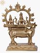 22" Bronze Shiva and Parvati Idol Seated On Throne In The Divine Residence of Kailasa