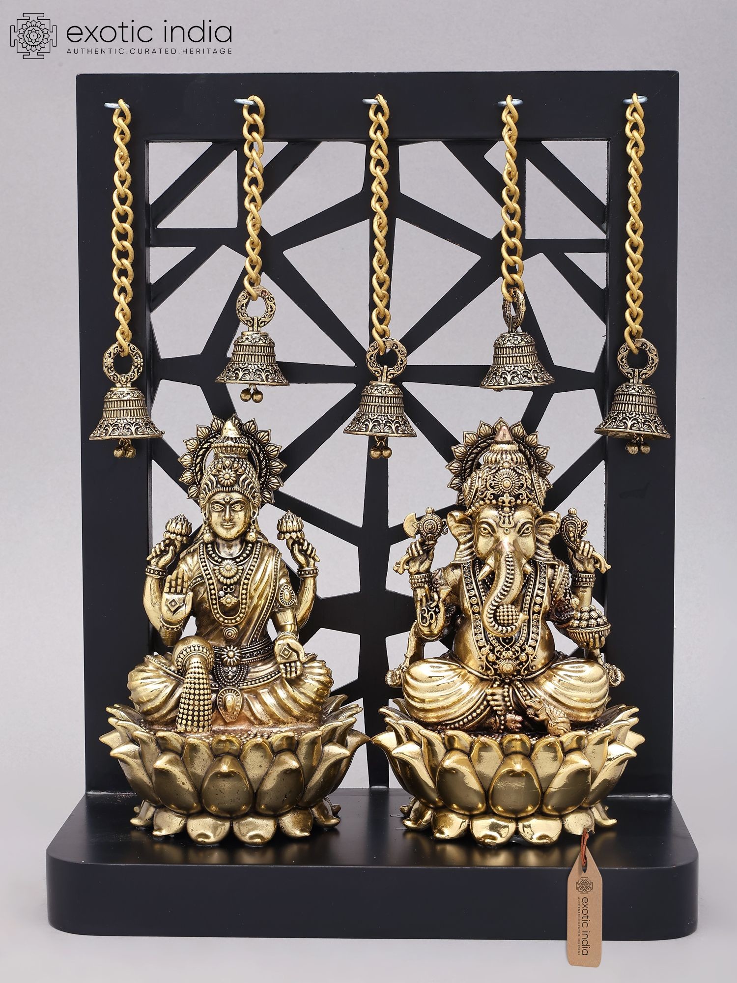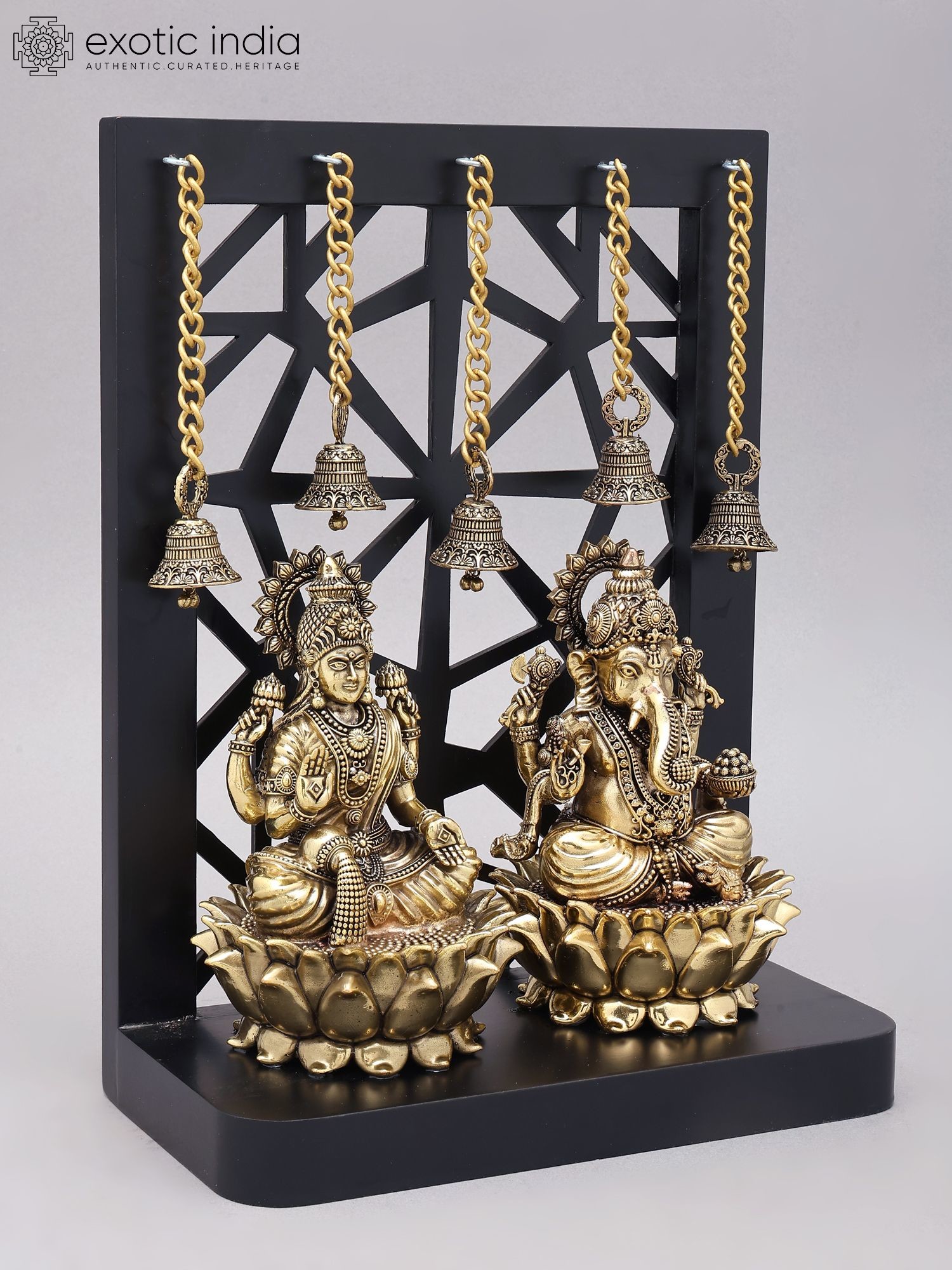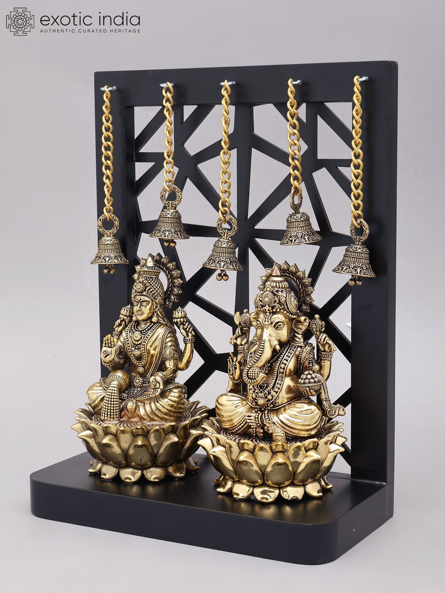 12" Superfine Sitting Lakshmi Ganesha | Wood Framed Brass Statues