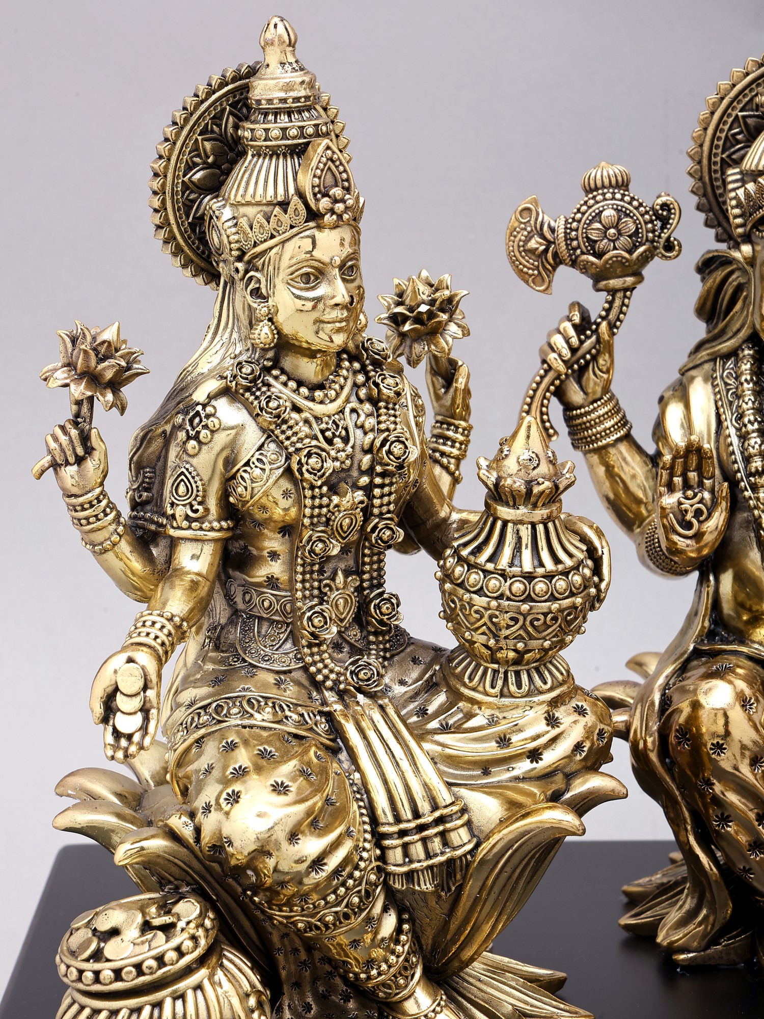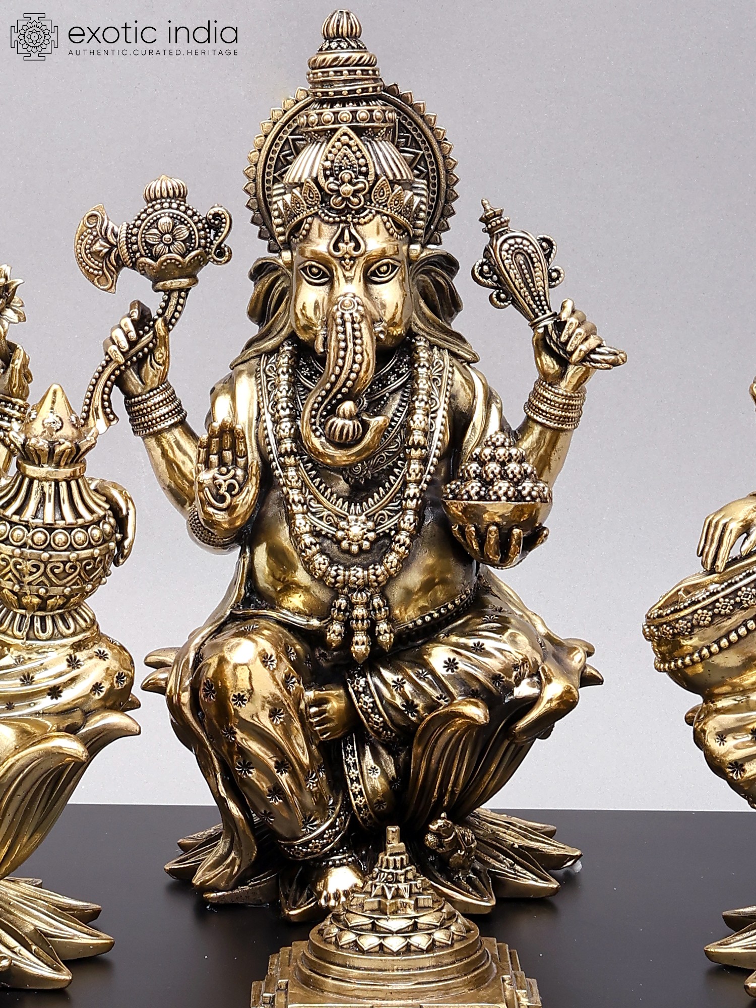 Lakshmi Ganesha and Saraswati Brass Sculpture (Set of Three Statues)